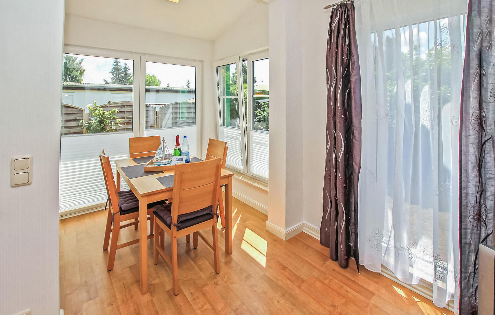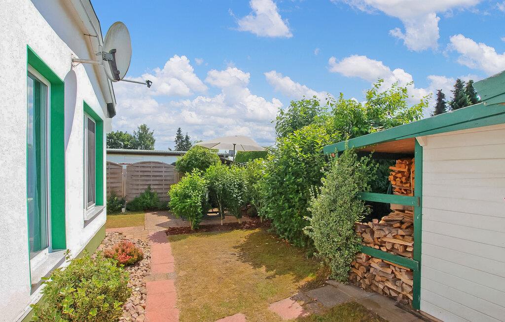 Nur ca. 200 m von einer Bademöglichkeit und einem kleinen Hafen am Stettiner Haff entfernt, befindet sich in innerhalb einer Feriensiedlung auf einem ca. 220 qm großen, umzäunten Erholungsgrundstück das 2018 kernsanierte und 2021 nochmals renovierte Ferienhaus für bis zu 3 Personen. Der feinsandige Strand, der Yachthafen und der Ortskern von Mönkebude mit Gastronomie und Einkaufsmöglichkeiten sind über den Deichweg in ein paar Gehminuten zu erreichen.