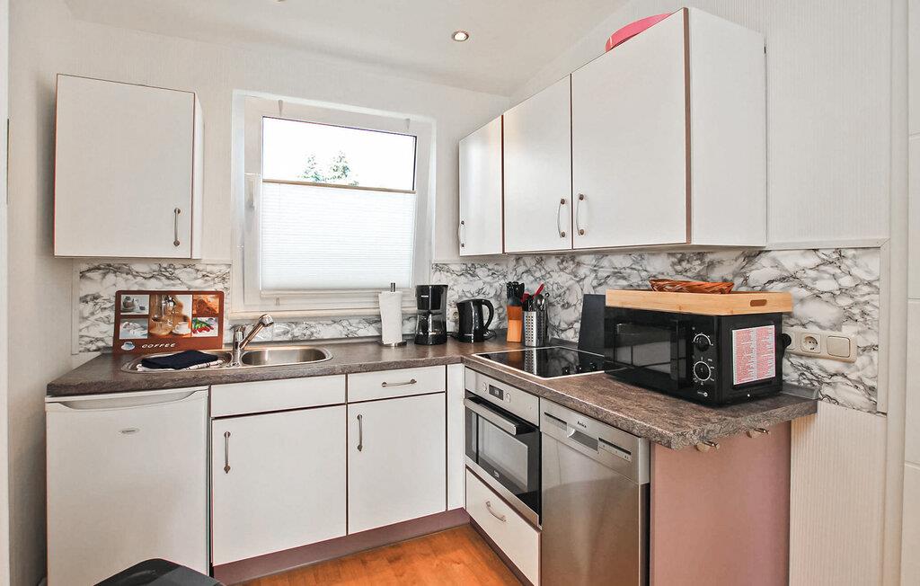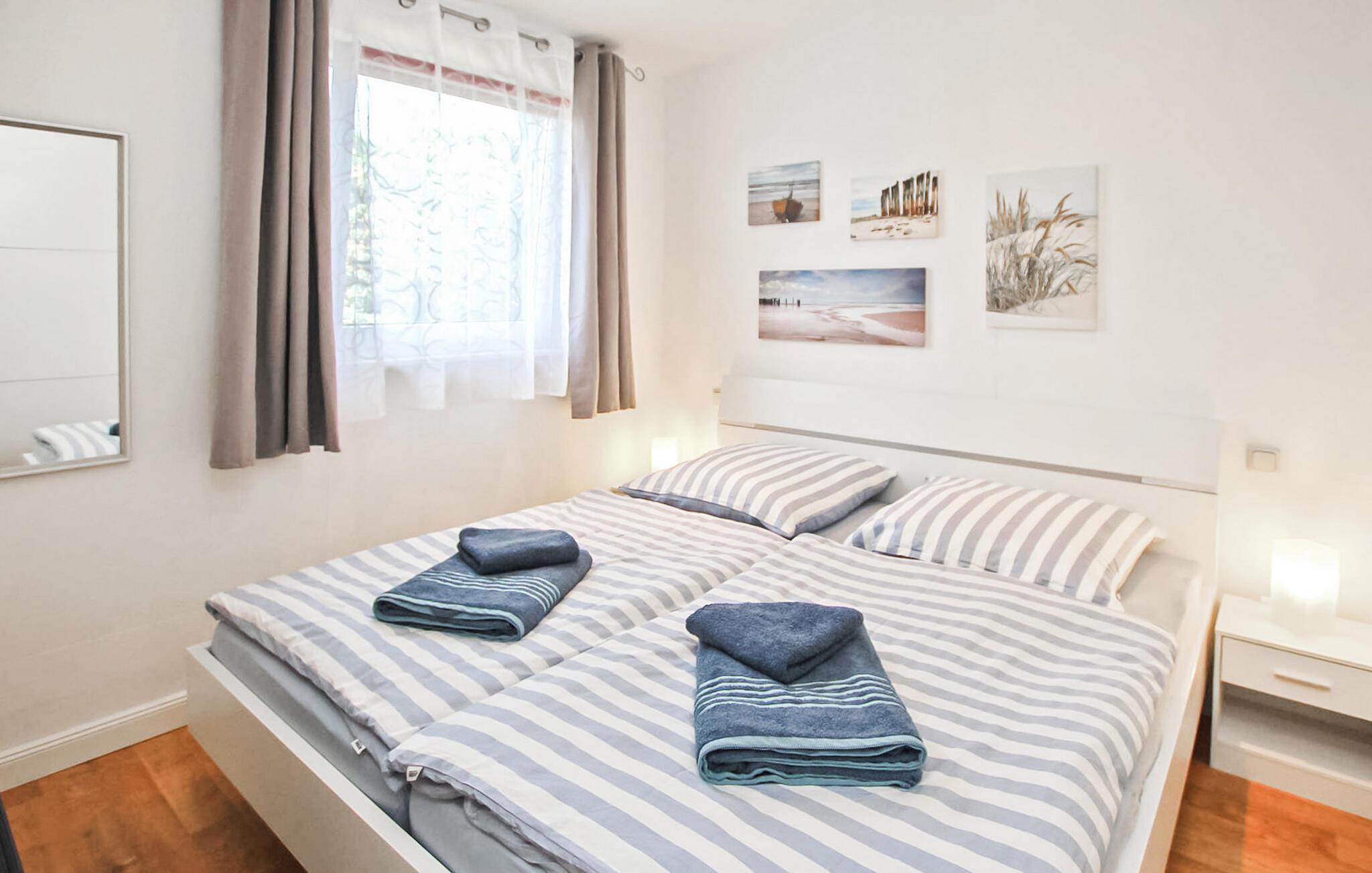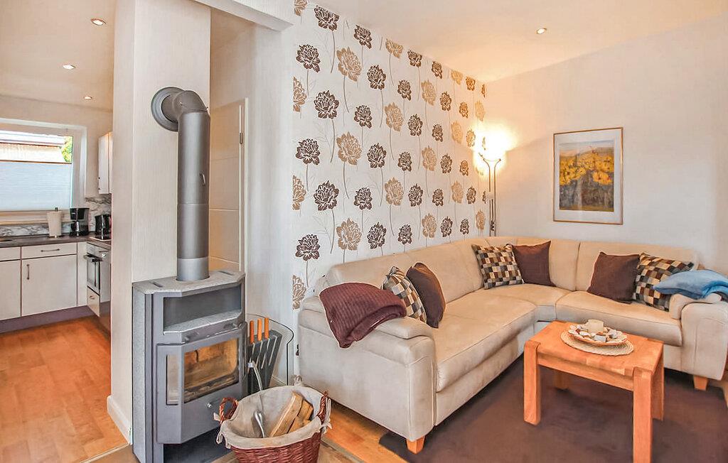 Das sehr geschmackvoll eingerichtete ca. 43 qm große,Nichtraucher-Ferienhaus ist ausgestattet mit Wohnraum (Schlafcouch - Aufbettung möglich, Kaminofen, E-Heizkörper, Flachbild-TV, Musikanlage, Essbereich, verkleideter Gefrierschrank), offener, komplett eingerichteten Küche (E-Herd mit Backofen, Kühlschrank, Geschirrspüler, Mikrowelle, div. Küchenkleingeräte), Schlafzimmer (Doppelbett, E-Heizkörper) und Bad (Dusche, WC, elektr. Handtuchwärmer, Fön). Zusätzlich stehen eine möblierte Terrasse, Sonnenliegen, Grill, ein kleiner Schuppen (Möglichkeit zum Räder abstellen), Hochstuhl, Kinder-Reisebett inkl. Matratze, kostenloses W-LAN und ein Parkplatz (zentral für die Anlage, ca. 30 m entfernt) zur Verfügung.