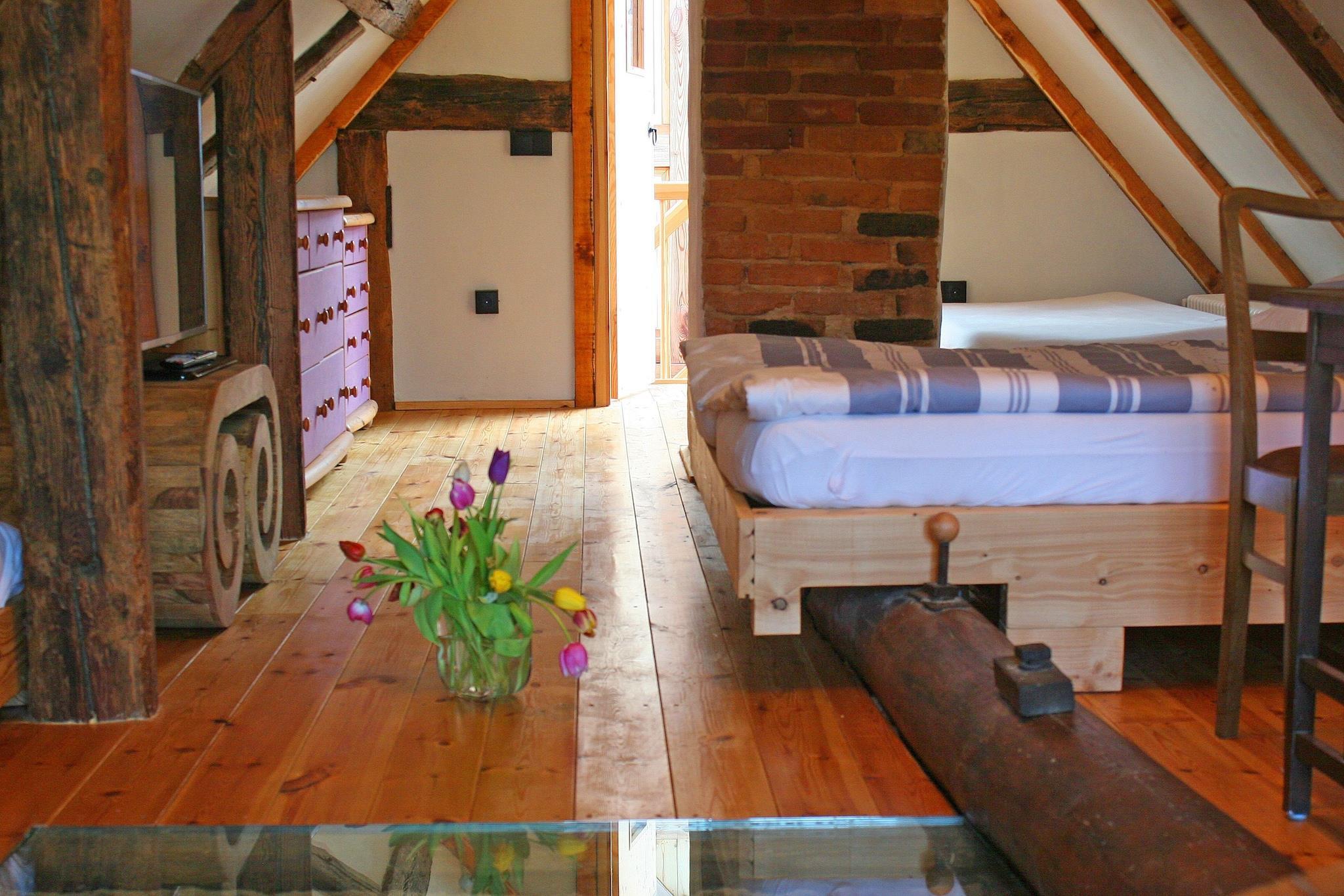 Willkommen in unserer Kate in Mönkebude – Mönke´s Kate – am Stettiner Haff. Für Sie steht unsere denkmalsgeschützte ehemalige Kate eines Fischer-Bauernhofes zur Erholung zur Verfügung. Im Jahre 1860 als Erweiterung für das ehemalige große Scheunenhaus einer Fischerfamilie von Mönkebude errichtet und bis ca. ins Jahr 1982 zum Wohnen genutzt. Heute erholen sich unsere Gäste zwischen den alten Fachwerkwänden aus Ziegeln, lehmverputzten Wänden innen und unter dem schönen Reeth-Dach auf ca. 80 m² Wohnfläche. Dazu steht Ihnen eine klassisch eingerichtete Wohnstube mit Sofa und Sesseln aus Uroma´s Zeiten und einem Kaminofen zur Verfügung. Natürlich ist auch ein TV-Set vorhanden und ein kleiner klassischer Sekretär für kurze Büroarbeiten. Neben der Wohnstube befindet sich die Schlafstube mit extra für diese Stube angepassten Betten, die zusammengestellt werden können. Angeschlossen an die Schlafstube finden Sie einen begehbaren Kleiderschrank. Der Lagerraumcharakter aus alten Tagen hat sich für Ihre Kleidung und einige andere Kleinigkeiten erhalten und ist optimal nutzbar. Die Küche als zentraler Raum wurde rundum in Glas mit einer tragenden Balkenkonstruktion herum ergänzt, um den Blick auf das Ziegelmauerwerk und die Konstruktion der Kate zu erhalten. Diese ist mit einer robusten einfach gehaltenen Vollholzküchenzeile eingerichtet in welcher unsere Gäste alle Küchenutensilien finden. Natürlich bietet aber auch Mönkebude einiges an Gastronomie für Sie. Der Eingangsbereich besteht aus einem Windfang und einem kleinem Flur. In der Heizsaison steht ein Konvektorheizkörper zur Verfügung – unterstützt von Elektroheizungen. Gegenüber des Eingangs zum Heuboden finden Sie den Ausgang zur Außenterrasse über dem Küchenbereich – ein gemütlicher Bereich mit Terrassentisch und Stühlen. Darüber hinaus stellen wir Ihnen W-Lan zur Verfügung. Die Übertragungsraten sind noch nicht die Besten – aber es wird daran gearbeitet. Gerne können Sie auch unsere Gartenliegen nutzen. Ebenso steht, nach gesonderter Absprache, für kleinere Familienfeiern, Seminare und Ähnliches ein Hobbyraum von ca. 60 m² zur Verfügung – mit Kaminofen, Sommerküche und Tischen, welcher mit bis zu max. 20 Personen genutzt werden kann. Ebenfalls bieten wir unseren Gästen eine kleine Sauna an. Die einmalige Benutzung der Sauna für 2 Std. ist bei uns inklusive. Weitere Nutzungen erfolgen gerne auf Absprache. Highlights inklusive: - W-Lan, verbrauchsabhängige Energiekosten, - ein Spielplatz mit Doppelschaukel, Rutsche, Trampolin und kleinem Sandkasten - ein zur Sitzgelegenheit umgebautes ca. 8 m langes ehemaliges Fischerboot - eine Feuerstelle mit Feuerschale und Grillmöglichkeit (Wind und Windrichtung sind zu beachten, wegen der umliegenden Reethhäuser) - 1 Stellplatz inkl., jeder weitere 5 EURO pro Tag vor Ort zahlbar. Zur Umgebung nur so viel: zum Strand und zum Hafen sind es ca. 200 m, Gaststätten gibt es im Erholungsort Mönkebude, der Perle am Stettiner Haff, einige. Einkaufen können Sie auch im Ortszentrum in einem kleinen gut sortierten Supermarkt. Dort finden Sie auch den örtlichen Bäcker, der vor Ort bäckt und auch als Konditor für ihre Urlaubstorte tätig ist.