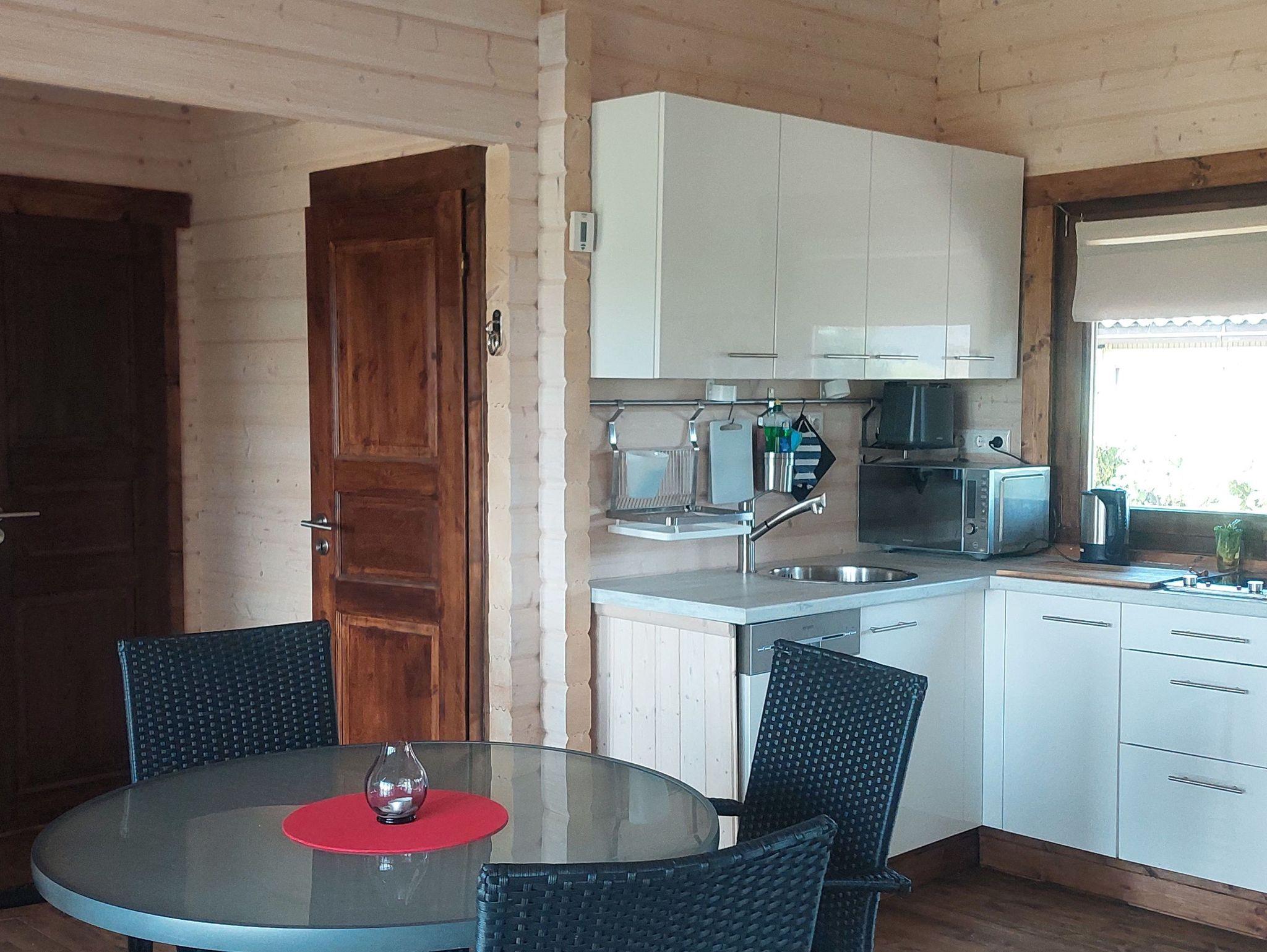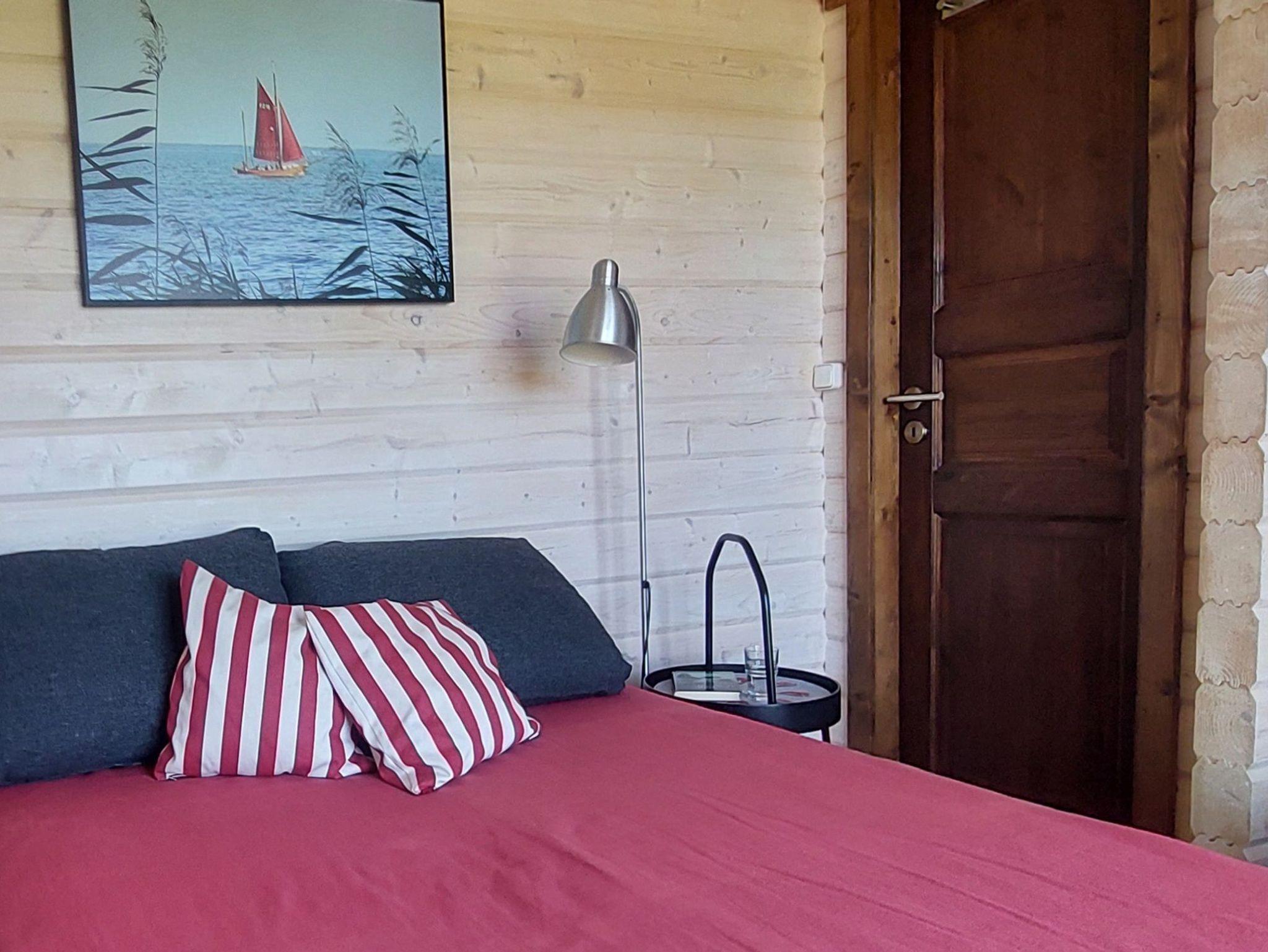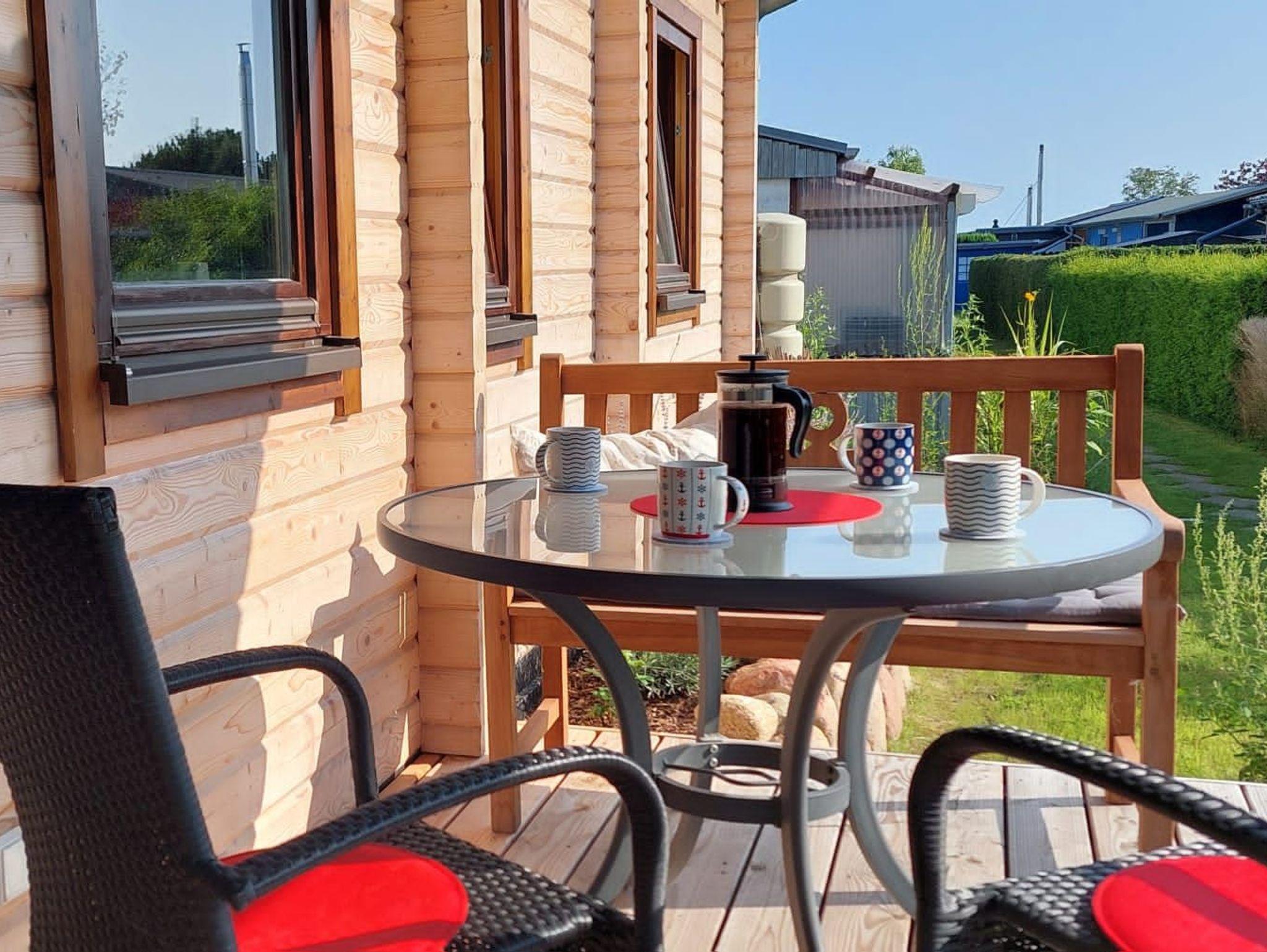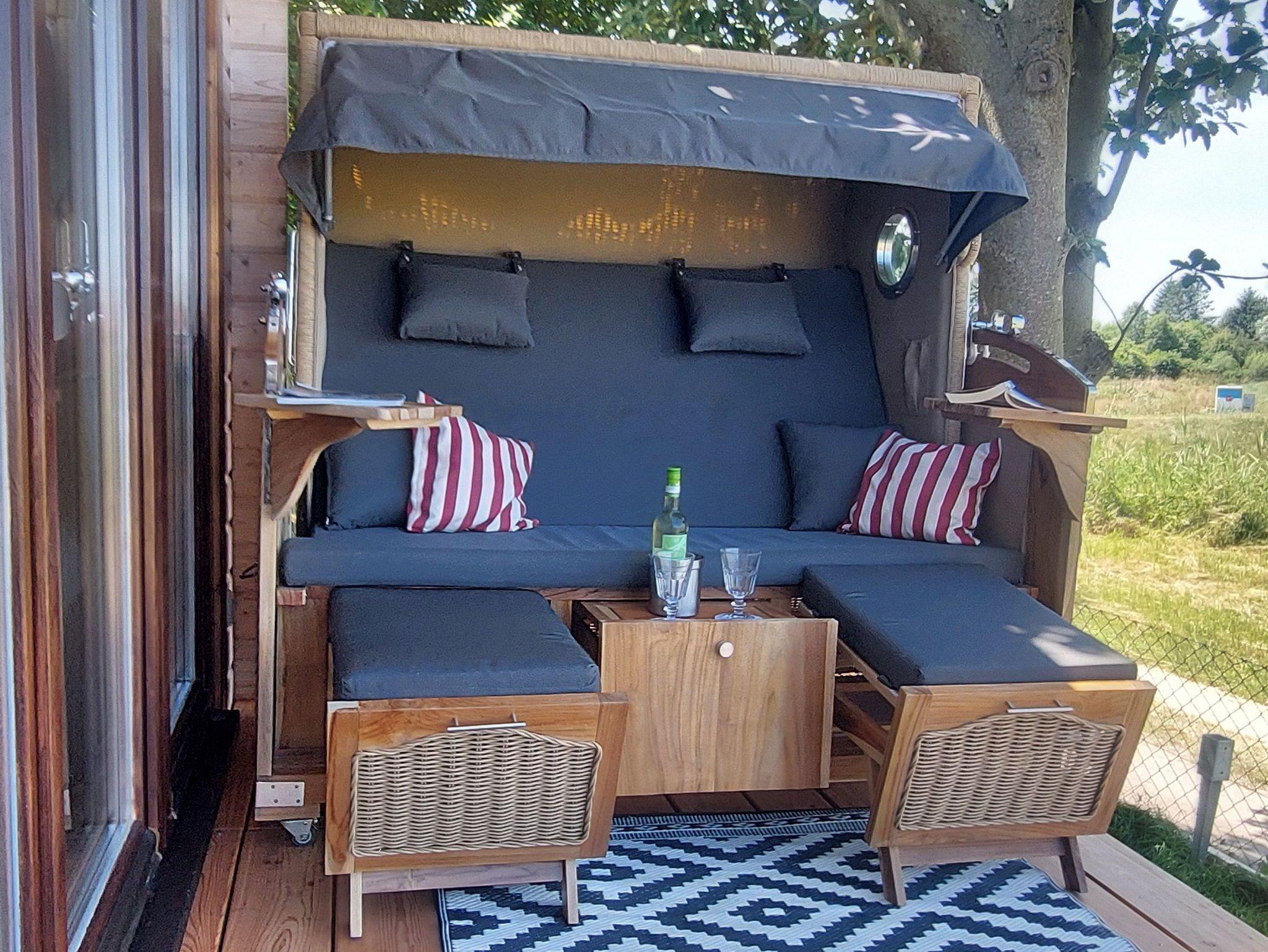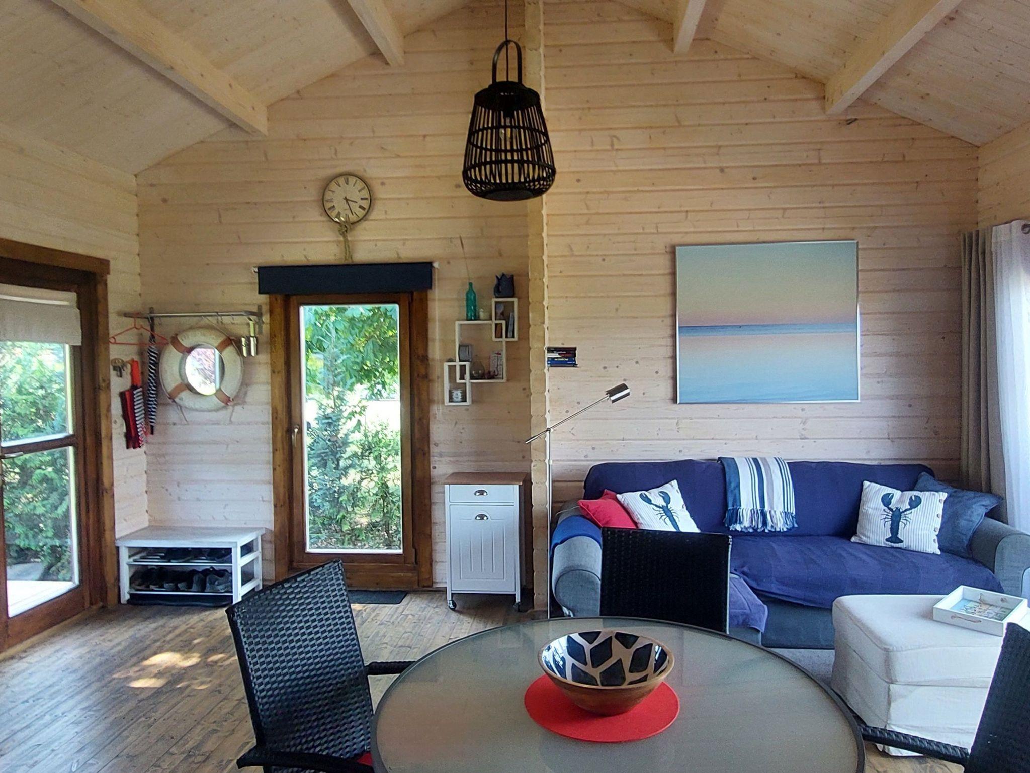 Gemütliches Blockhaus mit Strandkorb am Haff