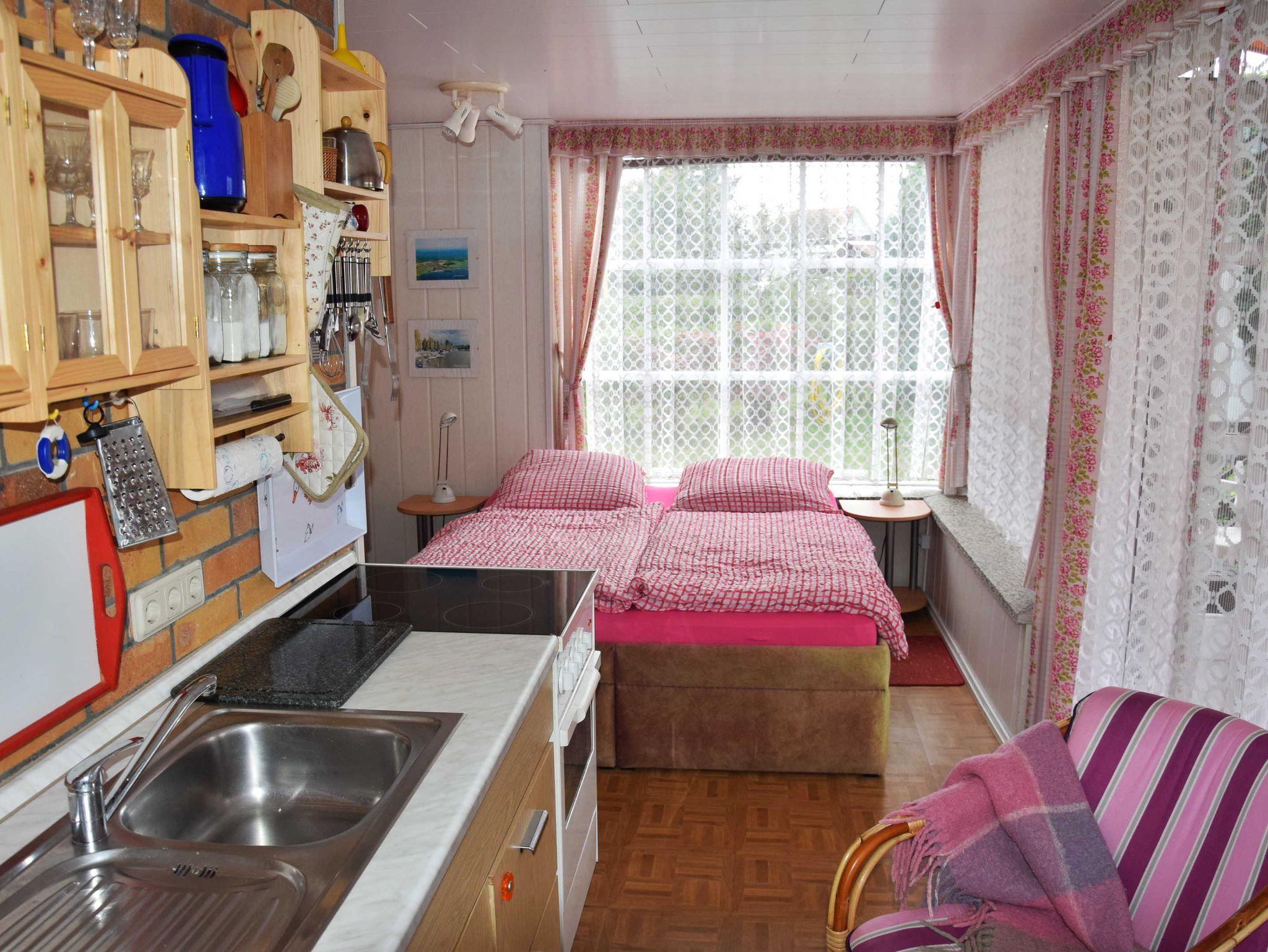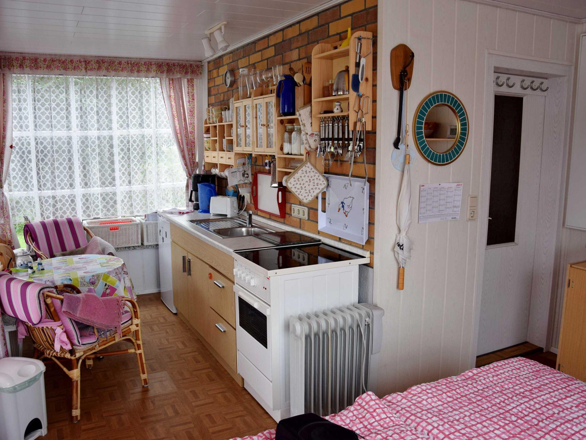 1 Wohnschlafraum mit 2 Betten, DU/WC, Küche offen zum Wohnbereich, TV/Radio, PKW Parkplatz am Haus, Bettwäsche incl., Handtücher bitte mitbringen, überdachte Terrasse mit Gartenmöbel, 2 Fahrräder inclusive,