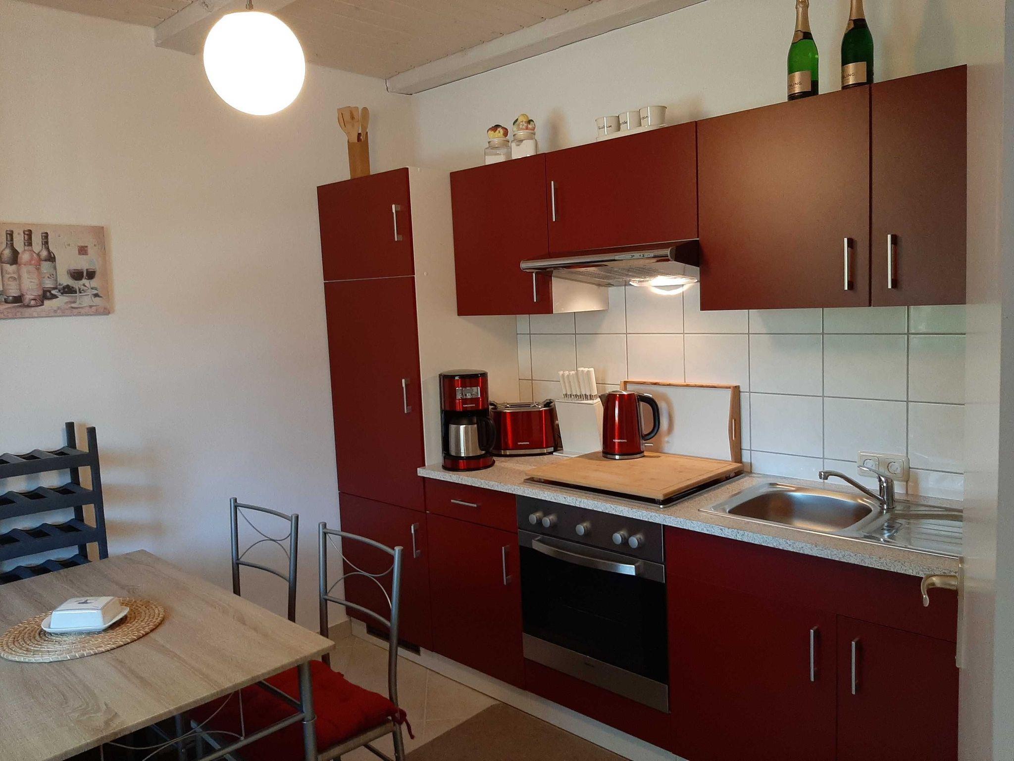 Komfortables Ferienhaus mit 1 Wohnraum, 1 Schlafraum mit Doppelbett, einem Bad mit Dusche/ WC und Waschmaschine, voll ausgestattete Küche, Parkplatz auf dem Grundstück,