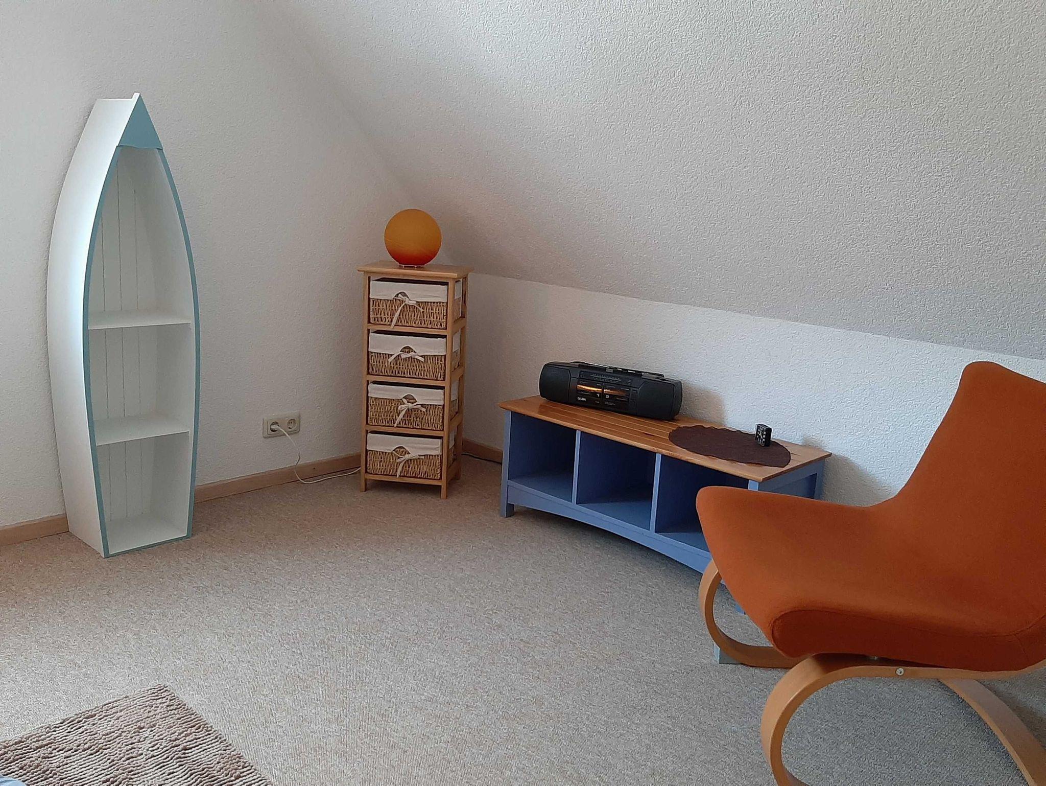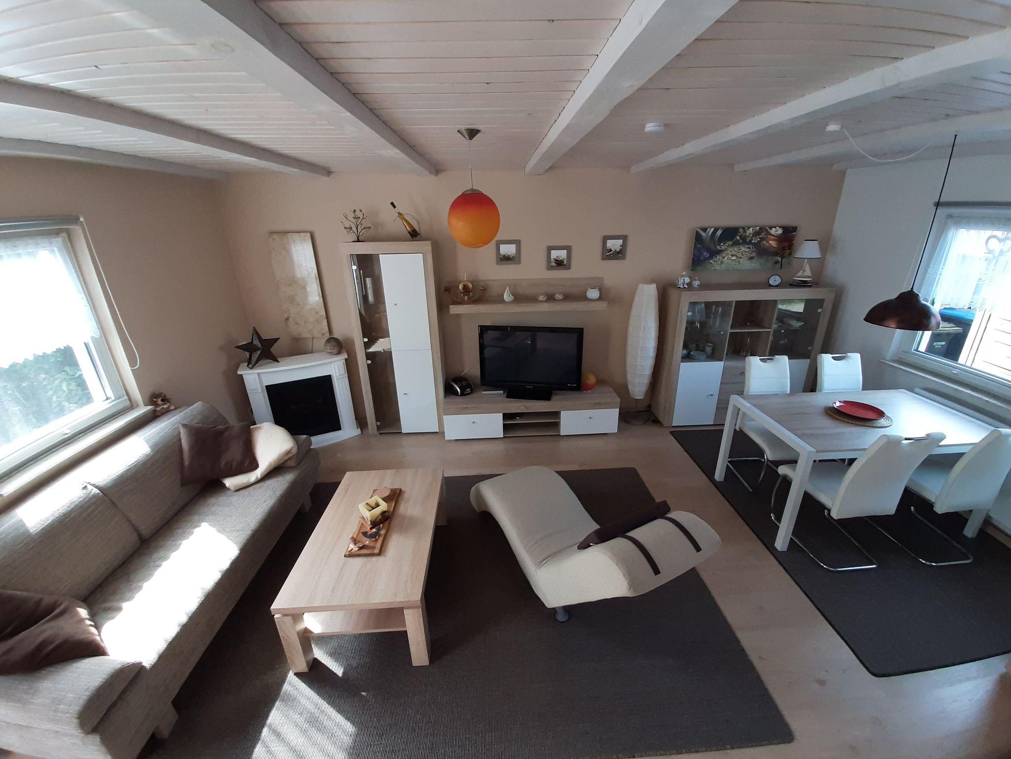 Das Ferienhaus erstreckt sich über 2 Ebenen. Im Erdgeschoß befindet sich ein gemütliches Wohnzimmer mit viel Platz zum Wohlfühlen sowie eine Aufbettungsmöglichkeit für 2 Personen auf einem Schlafsofa. Des Weiteren befindet sich auf dieser Ebene auch eine separate vollausgestattete Küche mit Herd incl. Backröhre, Kühlschrank, Wasserkocher, Kaffeemaschine, Toaster, Mikrowelle, Radio und einem Esstisch mit 4 Stühlen.