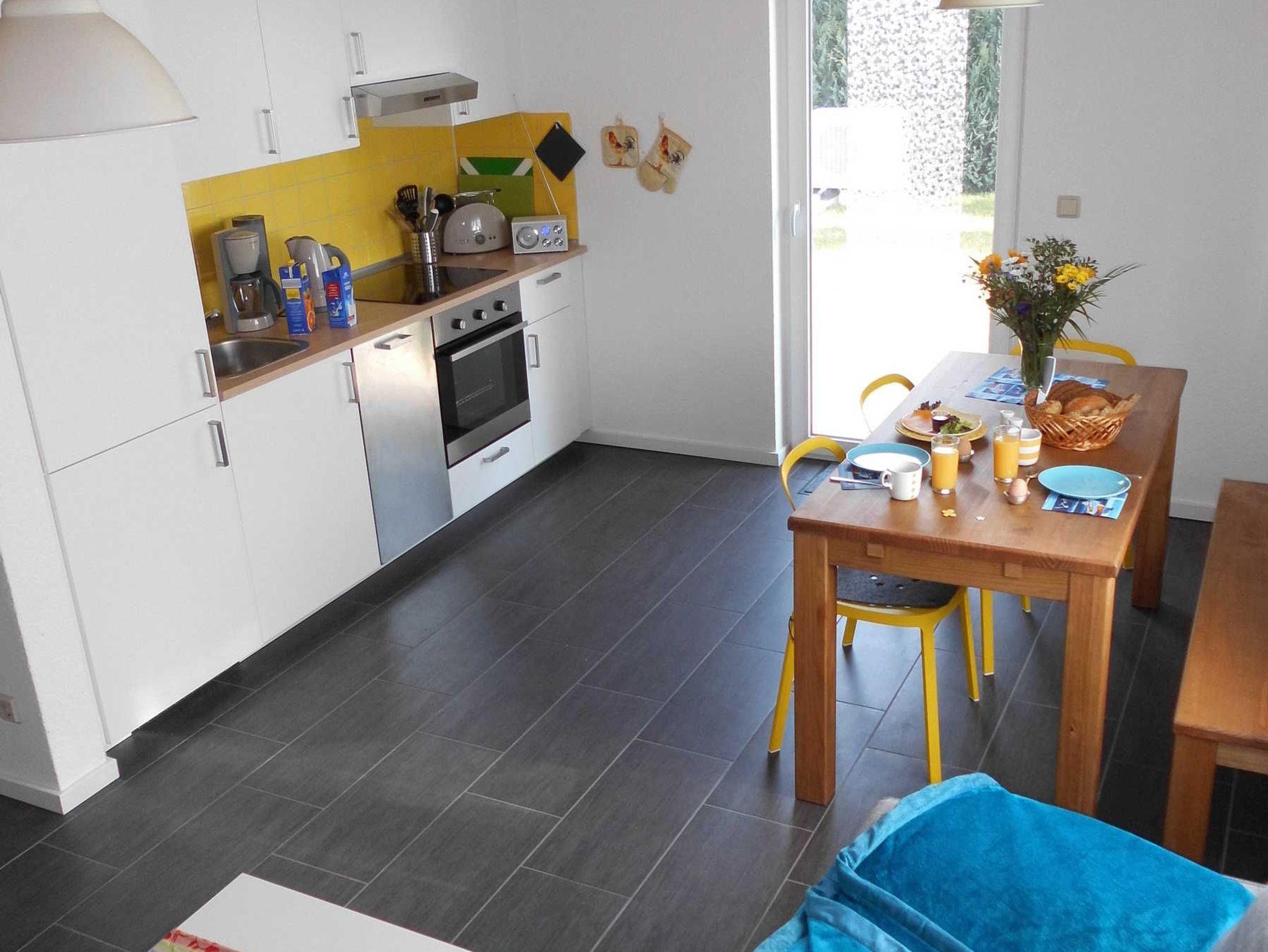 Haus Sonne verfügt über eine komplett ausgestattete Einbauküche mit Kühl- bzw. Gefrierschrank, Geschirrspülmaschine sowie Herd mit Ceran-Kochfeld inkl. Backofen. Weiterhin stehen u.a. ein Wasserkocher, ein Toaster, ein Eierkocher, eine Kaffeemaschine und ein Radio zur Verfügung.