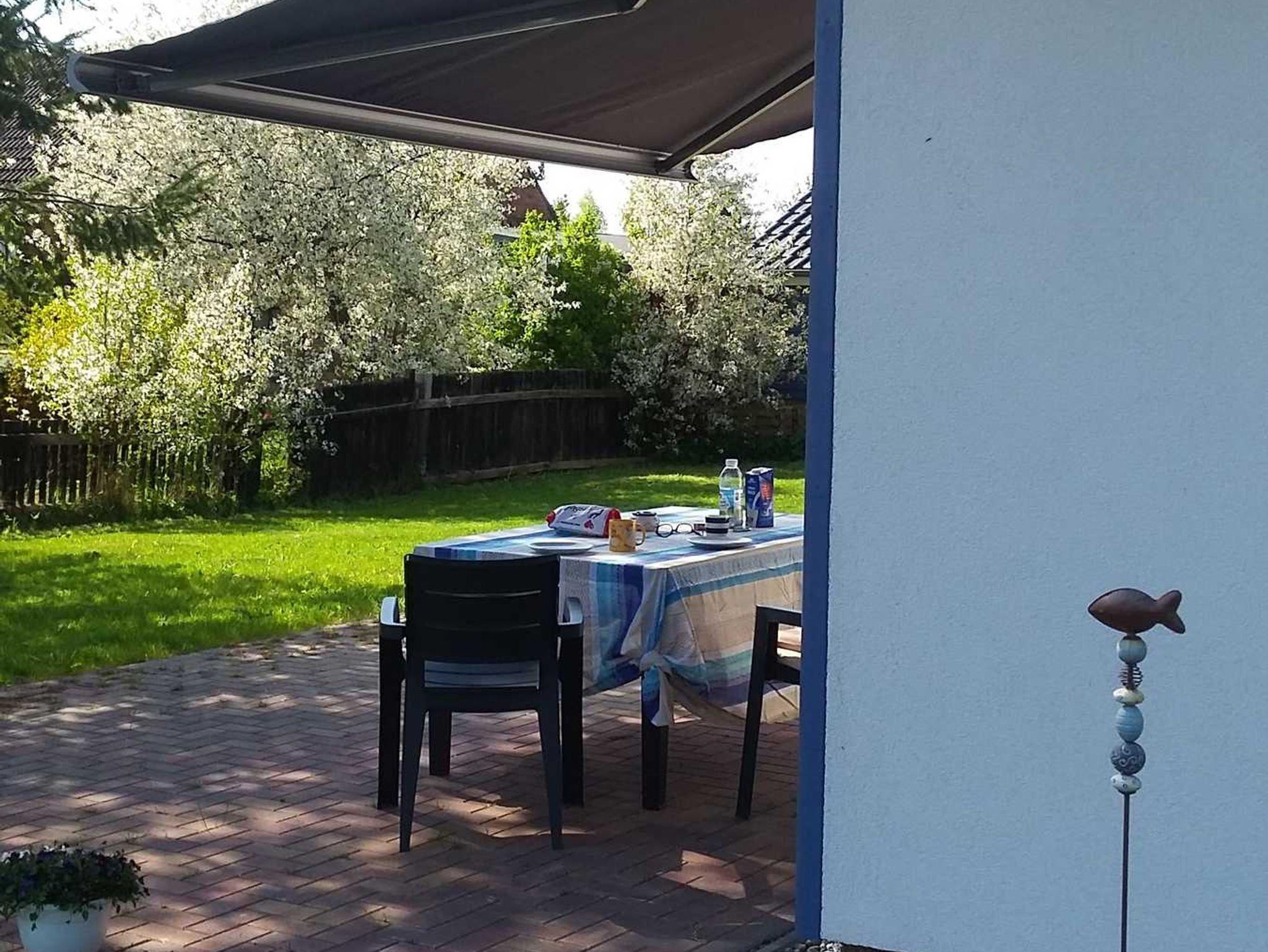 Auf der großen Terrasse laden Gartenmöbel in Form eines Tisches mit sechs Stühlen zum Verweilen ein. Ein kleiner Gartengrill, eine Wiesenfläche und ein eigener PKW-Stellplatz sowie eine Fahrradabstellmöglichkeit (Fahrradständer) stehen den Gästen zur freien Verfügung. Allerdings sind Liegestühle und Strandlaken selbst mitzubringen. Tiere sind im Haus nicht erlaubt. Das Rauchen ist zwar auf dem Gelände, nicht aber im Haus gestattet.