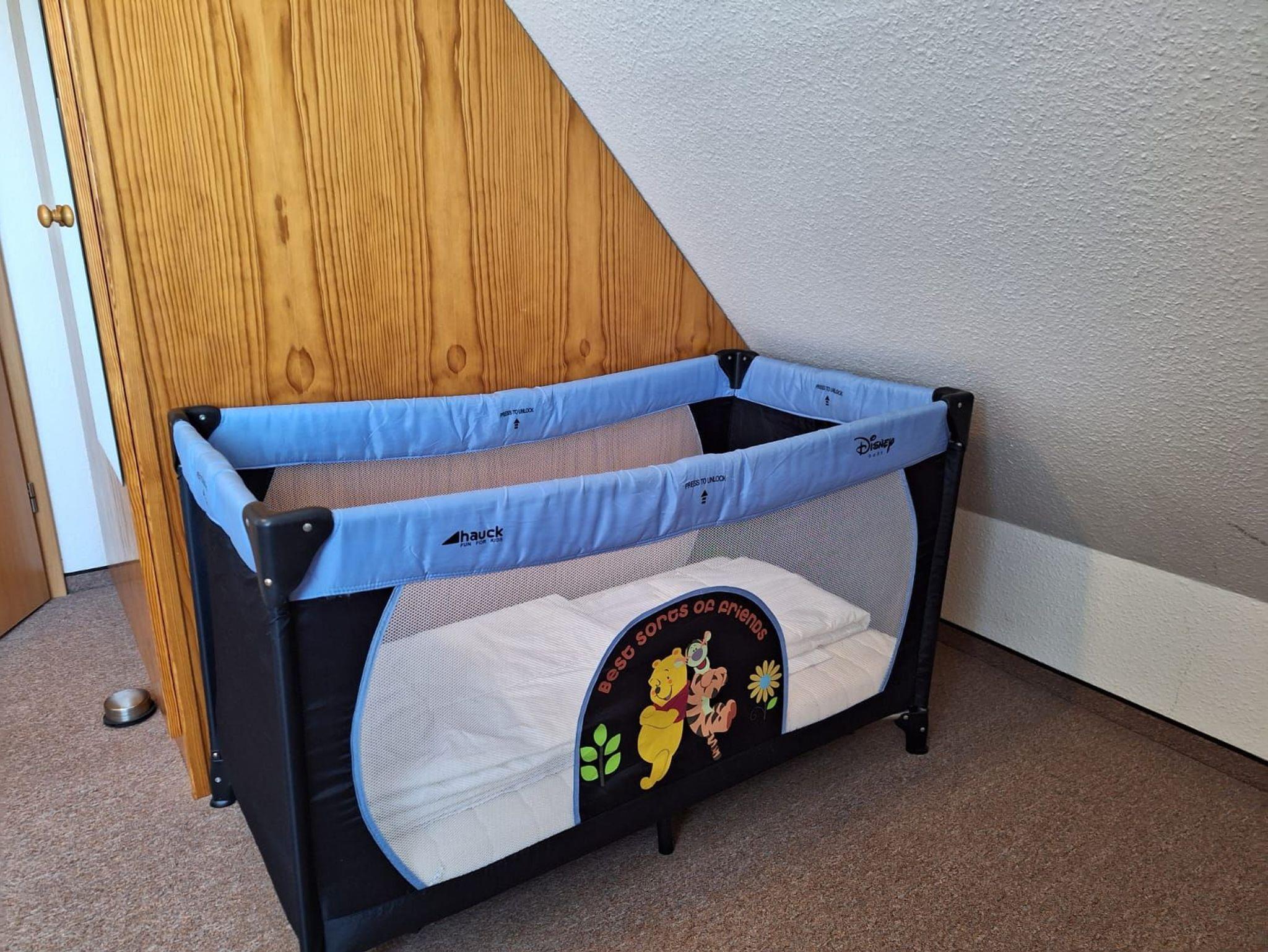 • Kinderbett, Kinderhochstuhl, Sandkasten, Schaukel, Bollerwagen und Schaukelpferd