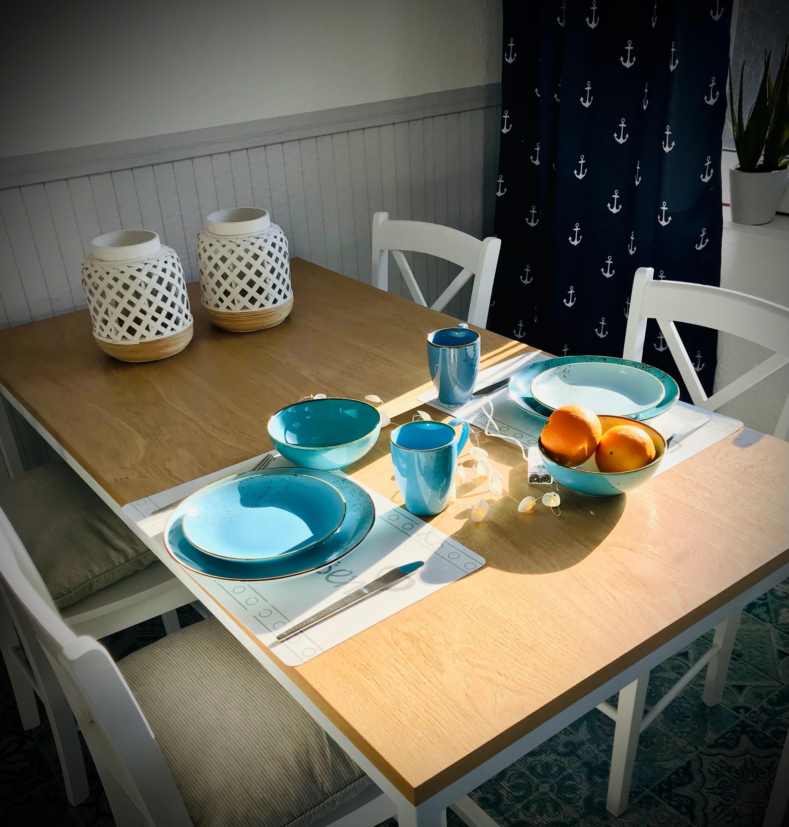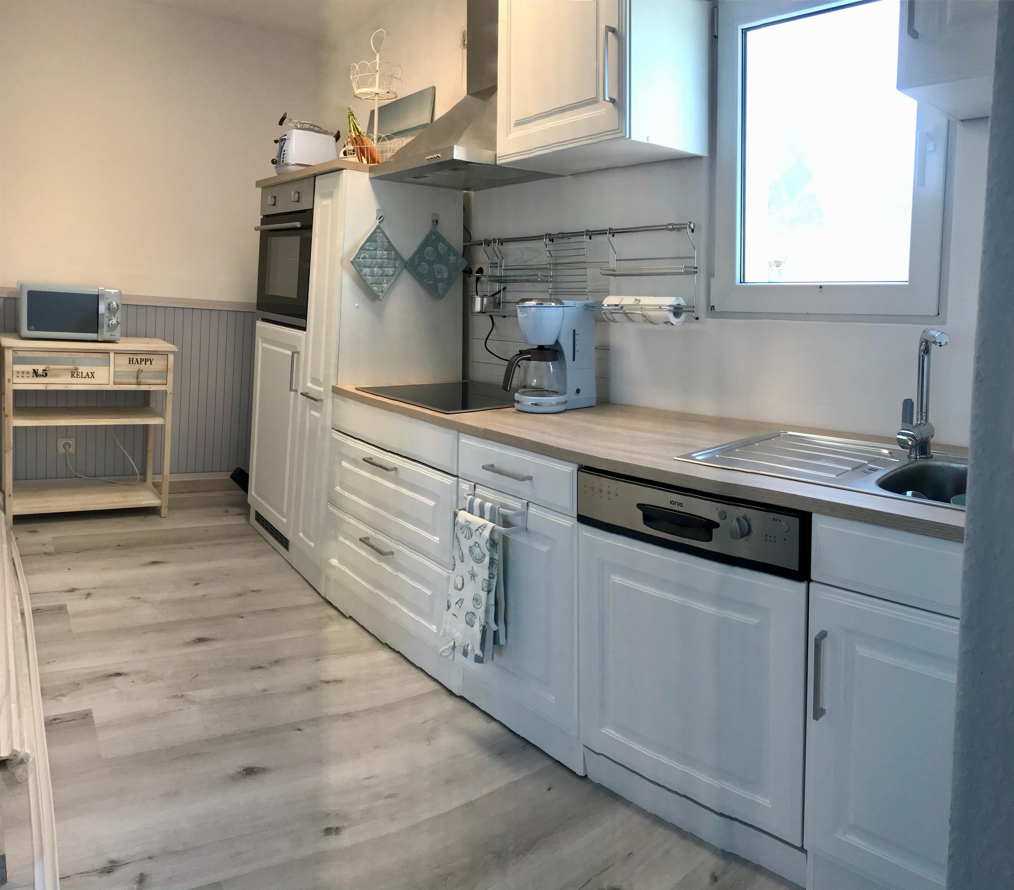 Genießen Sie Ihren Urlaub in vollen Zügen, bei schönem Wetter auch draußen auf der Terrasse. In der gut ausgestatteten Küche finden Sie neben einem Kühlschrank auch eine Mikrowelle und einen Backofen.