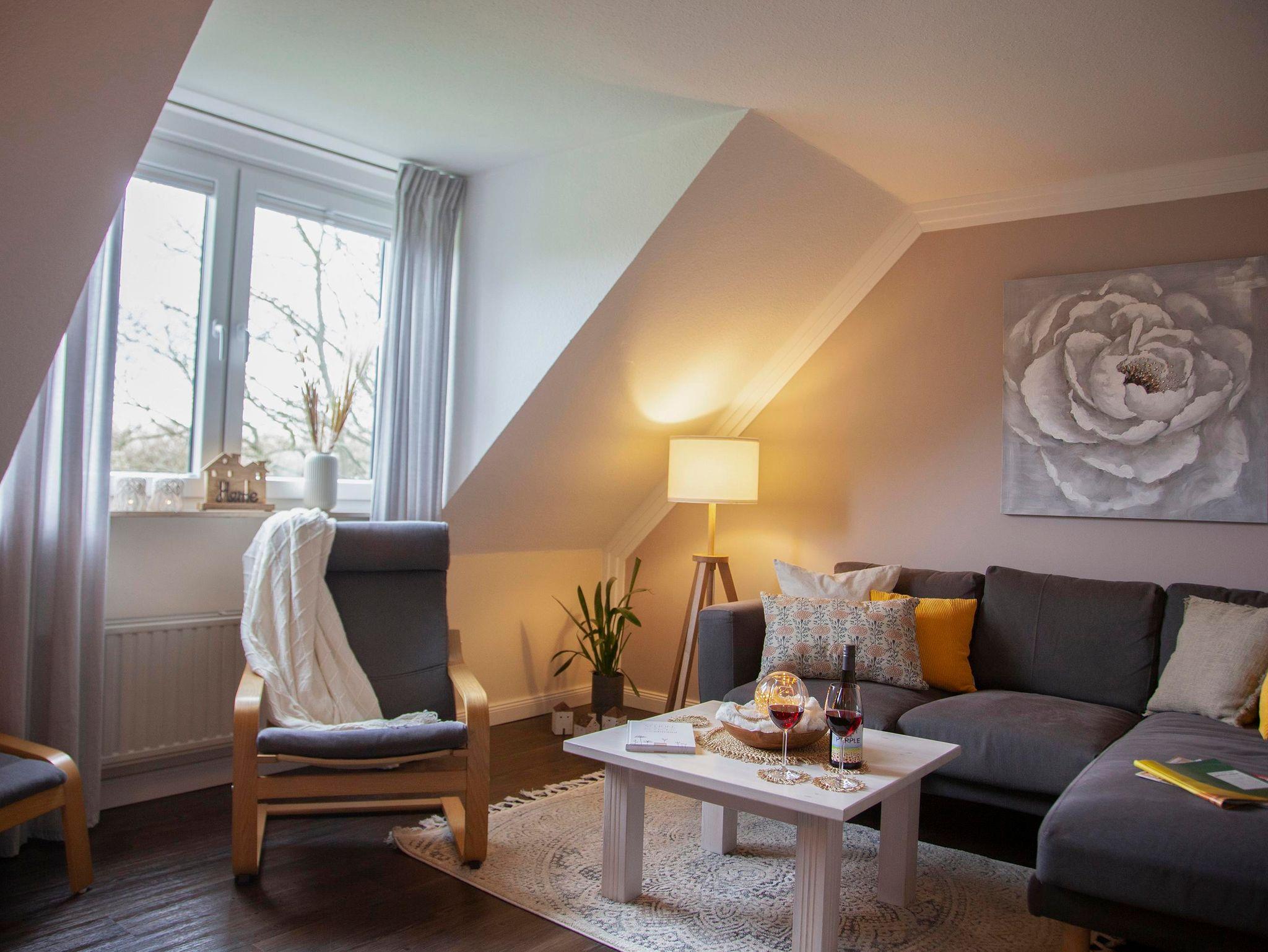 Die moderne, neu eingerichtete Ferienwohnung liegt auf einem großen Grundstück (4.000 qm) mit einer Gartensauna und bietet Erwachsenen sowie Kindern viel Platz zum Erholen und zum Spielen. Für die Kleinen gibt es eine Schaukel und eine Hüpfburg.