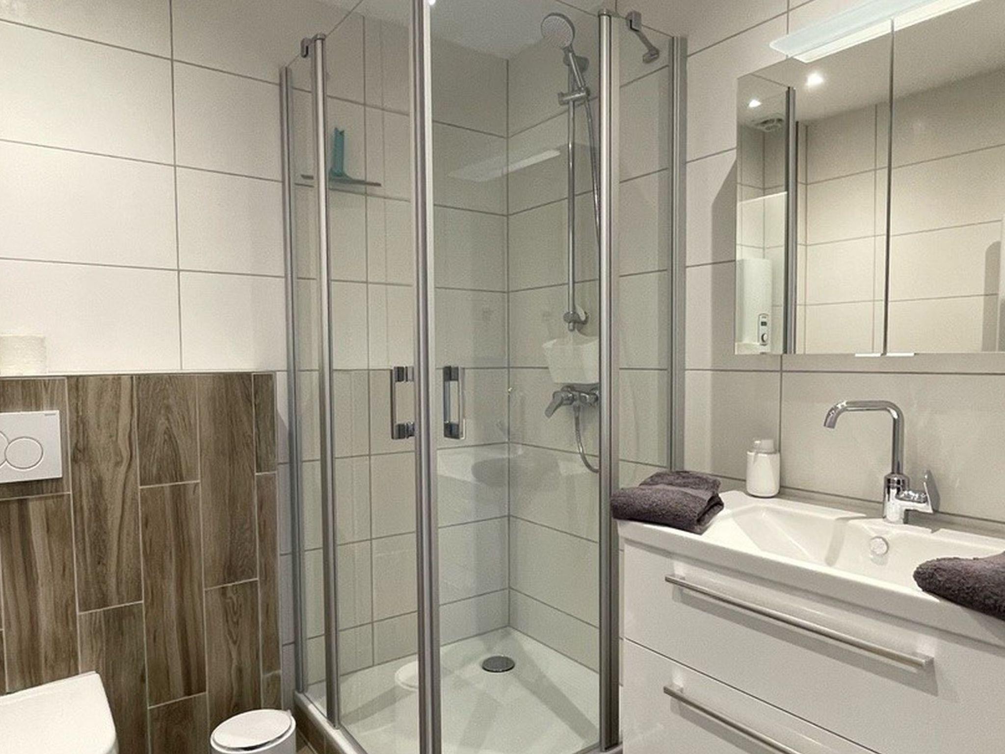 - Duschbad, WC, Waschbecken, Spiegel, Handtuchwärmer; Handtücher zu buchbar;