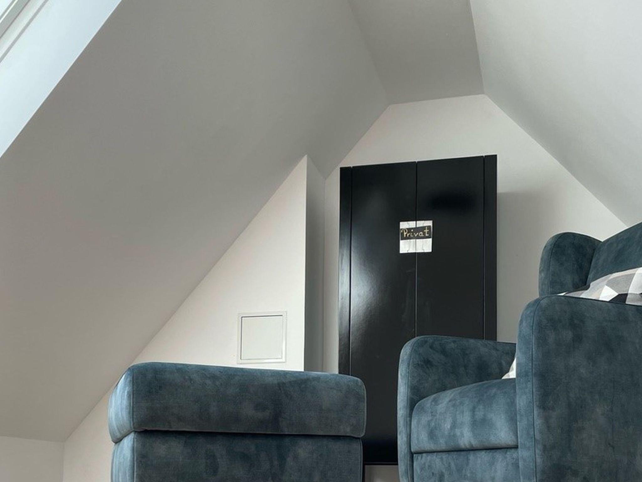 - über eine Treppe gelangt man in den offenen Spitzboden, der mit einem modernen Sessel mit Hocker ausgestattet ist. Von hier oben hat man einen traumhaften Blick auf den Hafen und das Meer.