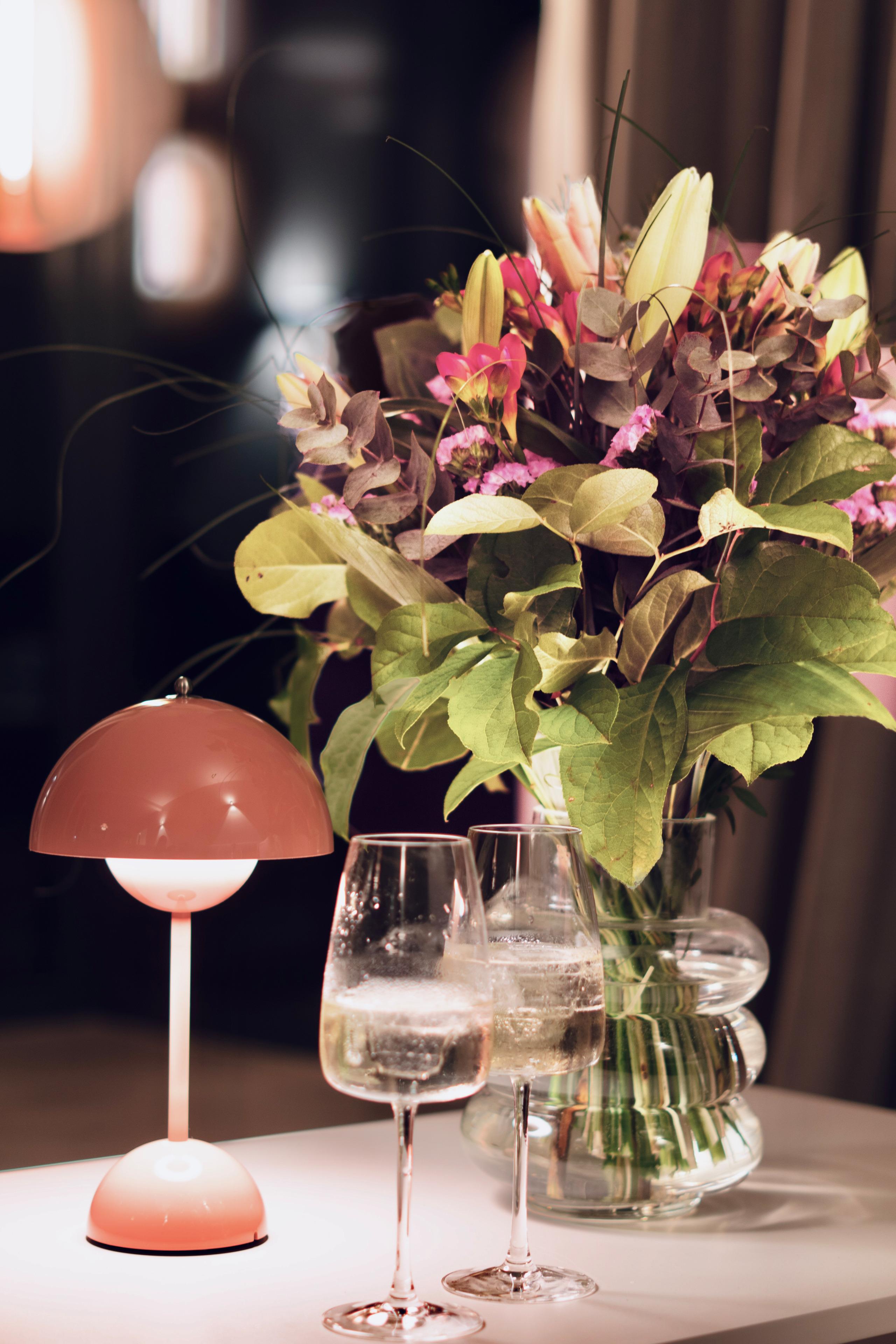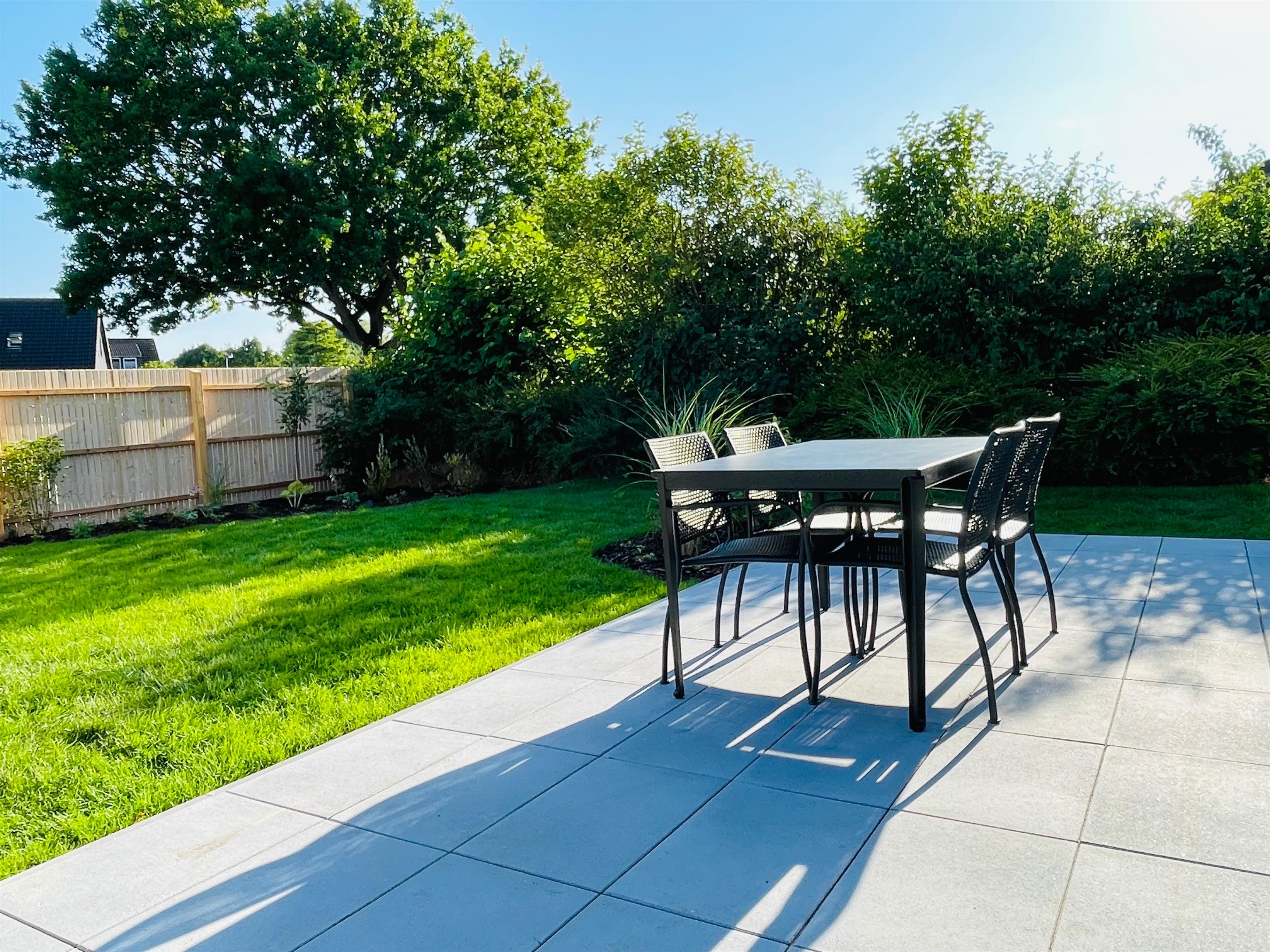Das großzügige, gemütliche Wohn- und Esszimmer (40 qm) ist stilvoll mit dänischen Design-Elementen eingerichtet und verfügt über eine ausladende, bodentiefe Fensterfront. Diese ermöglicht einen fließenden Übergang zwischen dem natürlich gestalteten Garten und dem Wohnraum, der den Raum ganztägig mit Sonnenlicht durchflutet.