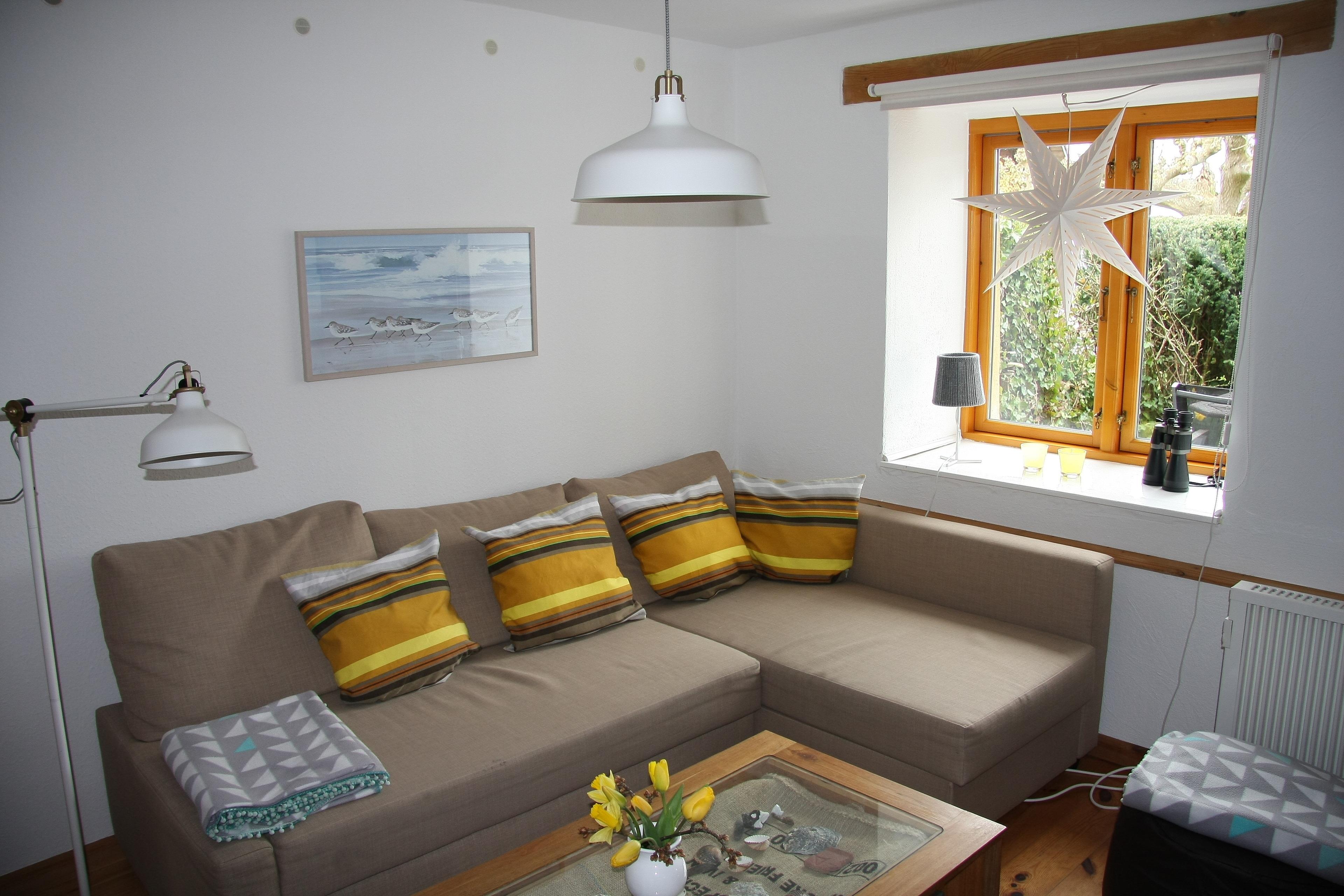 Gemütliche Ferienwohnung im Erdgeschoss einer historischen Mühle (1883) unmittelbar an der Schlei, mit Blick auf das Maasholmer Noor. Mit Kamin, wlan, 2 getrennten Schlafzimmer mit jeweils eigenem Dusch/WC Bad und hochwertiger Einbauküche.