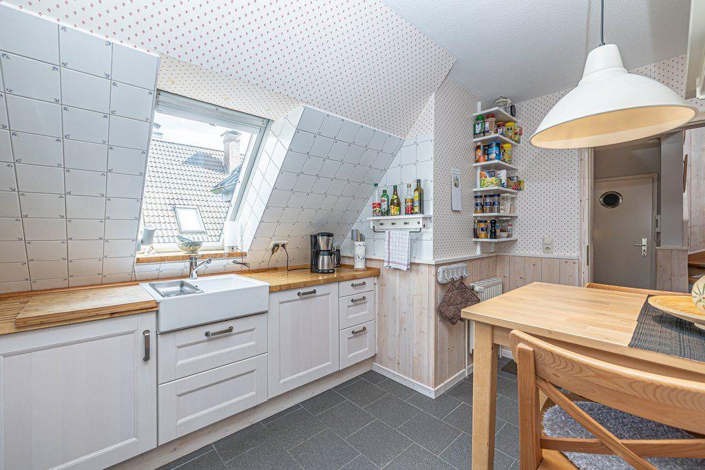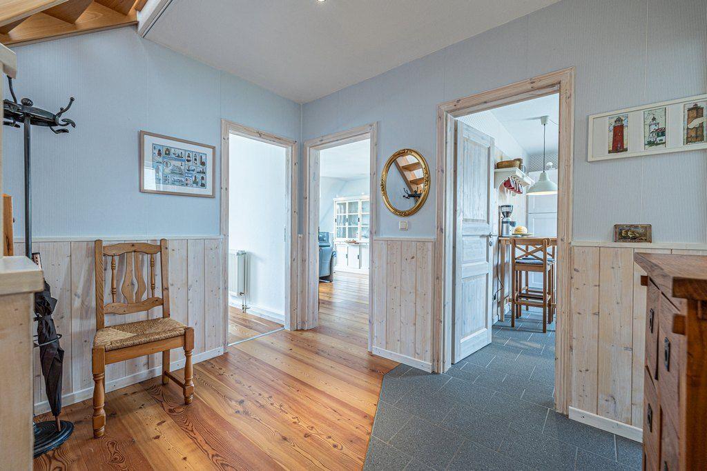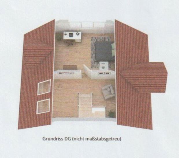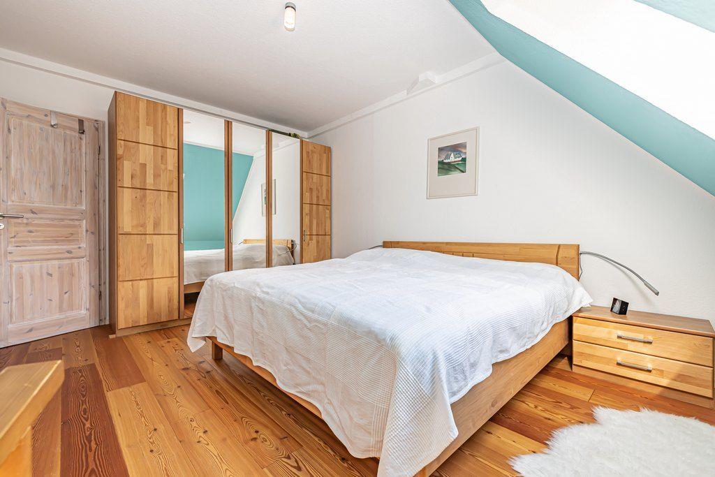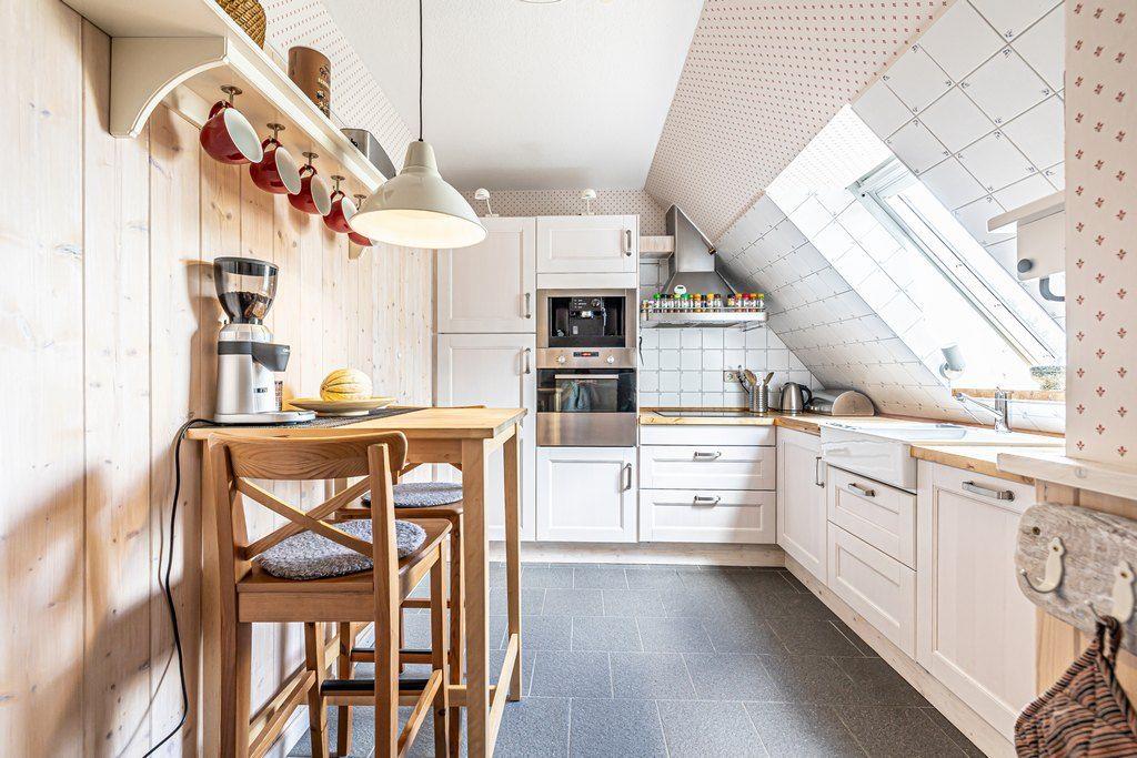 Diese Ferienwohnung befindet sich im 1. Obergeschoss und Dachgeschoss eines Mehrparteienhauses.