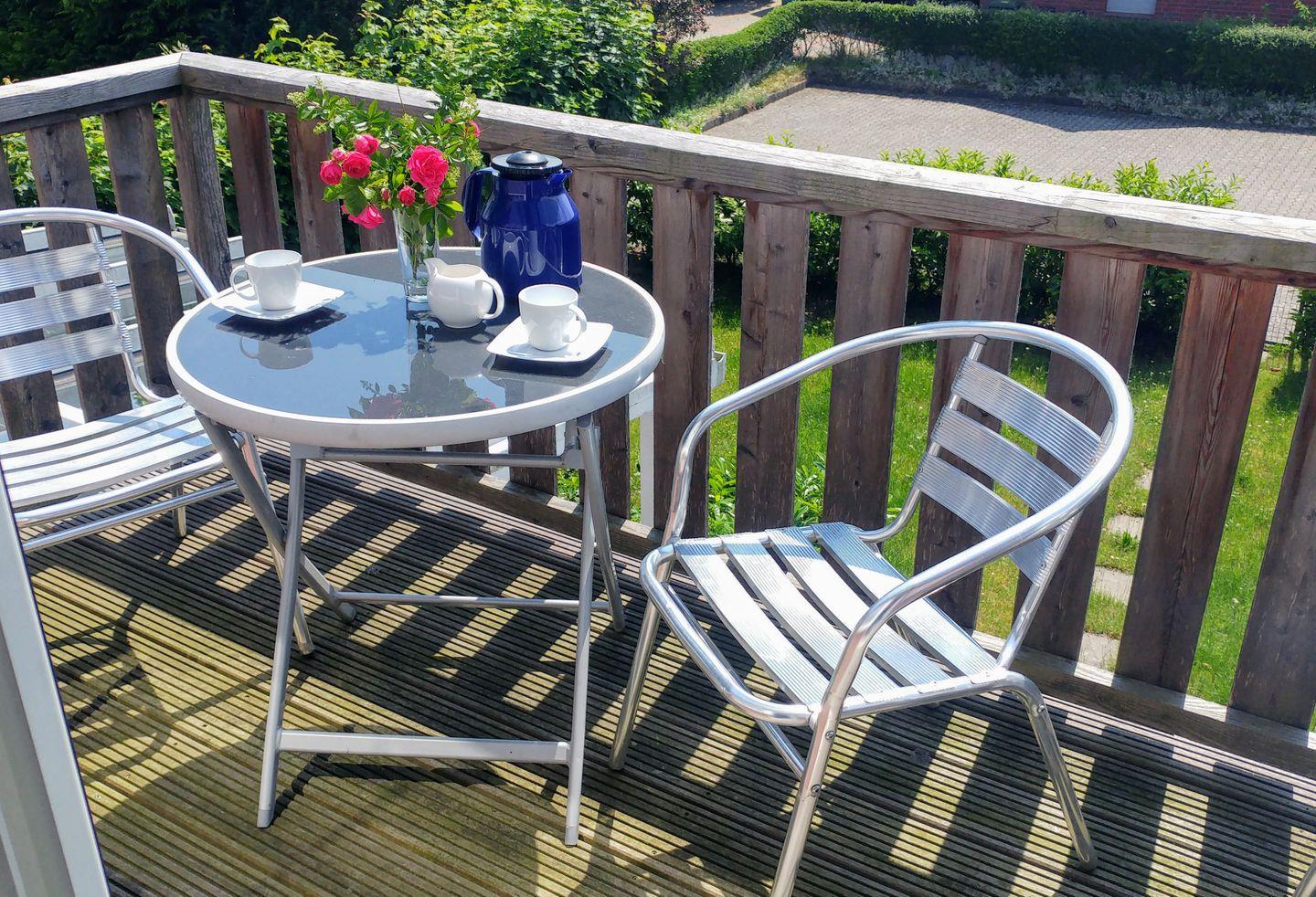 Zusätzlich haben Sie die Möglichkeit auf Ihrer eigenen geschützt liegenden Terrasse den gemeinsamen Garten zu genießen.