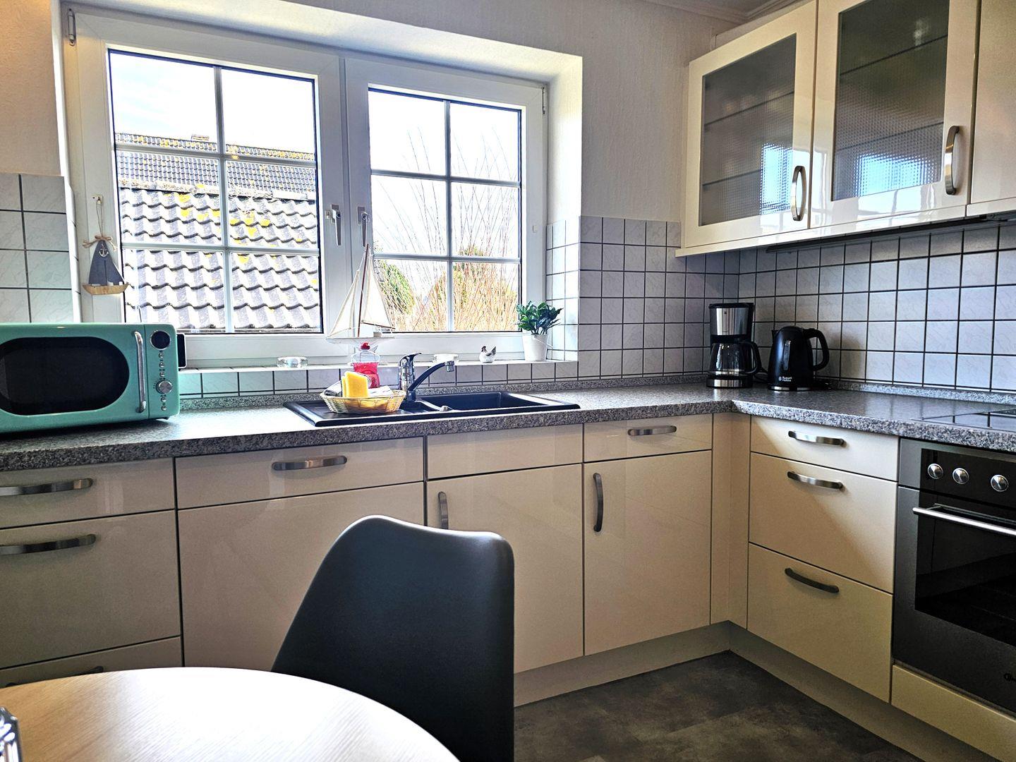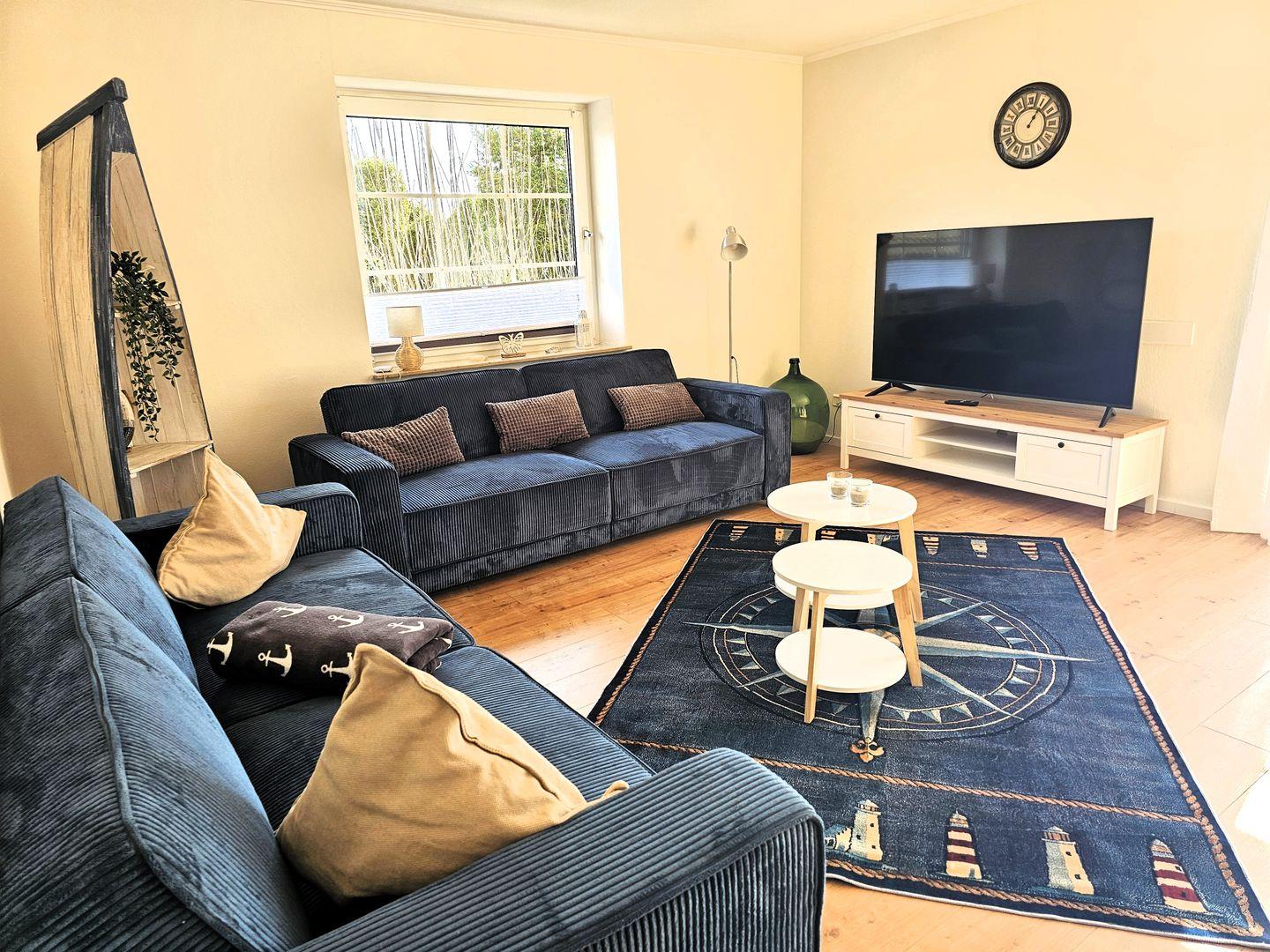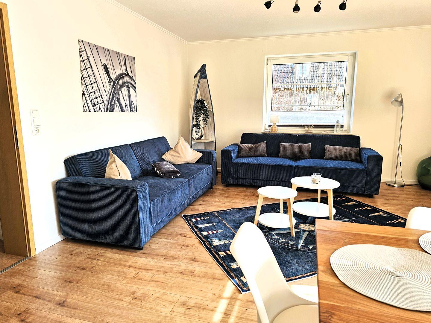 Unsere Ferienwohnung hat Platz für bis zu 6 Personen und steht auf einem 525 qm großen Grundstück. Ihr Hund ist bei uns herzlich willkommen! Die Ferienwohnung Luv hat ein großes helles Wohn-/Esszimmer mit direkten Terrassen- und Gartenzugang, ein großes Schlafzimmer mit Doppelbett und ein Zweibettzimmer jeweils mit Kleiderschränken und Verdunklungsrollo.Die gemütliche Wohnlandschaft im Wohnzimmer kann als Schlafcouch für zwei weitere Personen genutzt werden. Die voll ausgestattete Wohnküche mit Geschirrspüler und gemütlichem Essbereich lässt keine Wünsche offen und lädt Sie zum gemeinsamen Kochen und Beisammensein ein. Das helle Badezimmer mit Whirlwanne, Dusche und Fenster verspricht Frische und Wellness in Ihrem Urlaub.