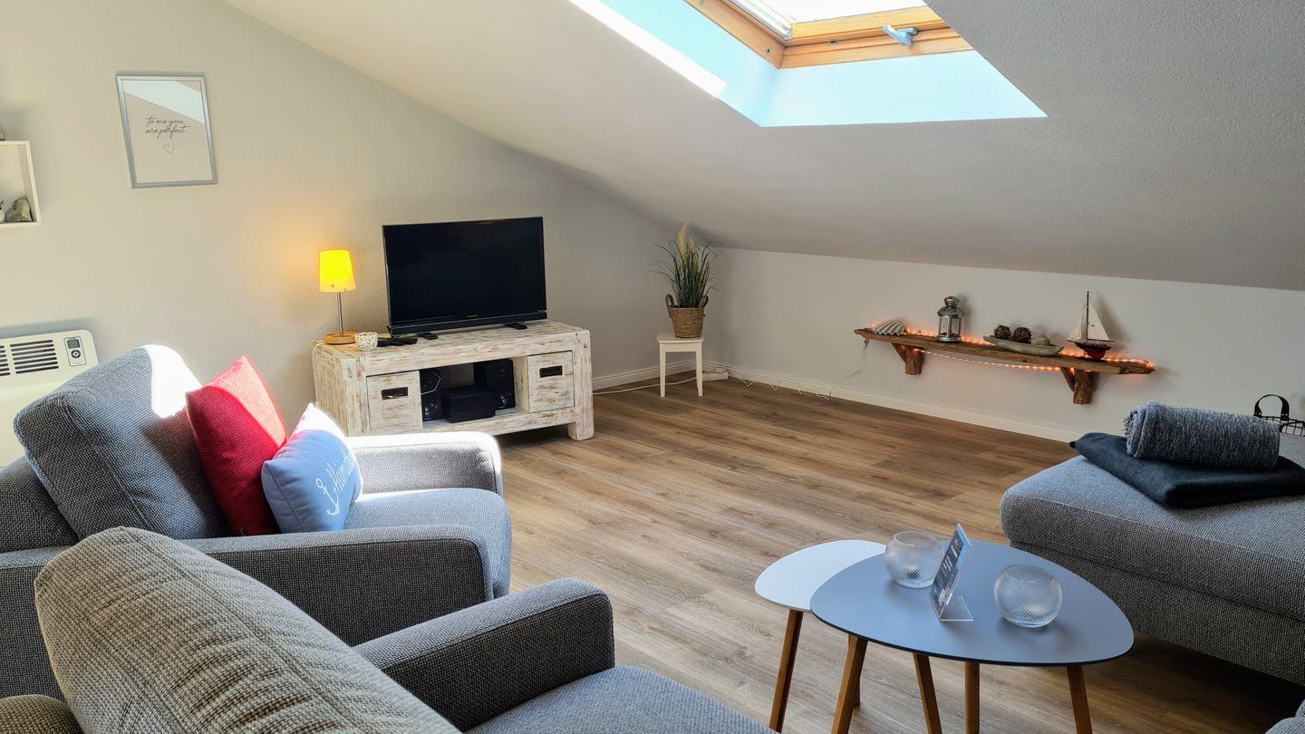 Die komfortabel und mit viel Liebe eingerichtete 65m² Ferienwohnung für bis zu 4 Personen + Baby im Dachgeschoss des Ferienhauses, das über insgesamt[nbsp] drei Wohnungen verfügt, lädt Sie ein, Ihre wertvollste Zeit des Jahres an der Ostsee und Schlei zu verbringen.