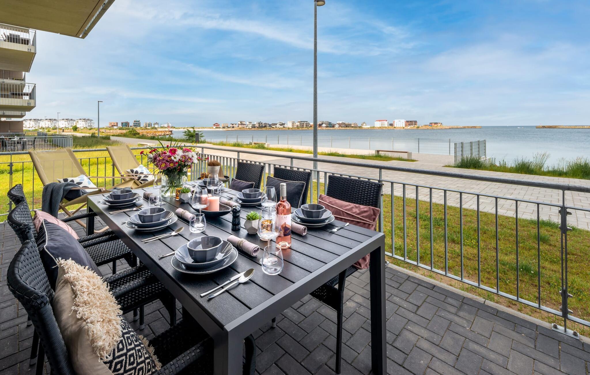 Modern, hochwertig und mit viel Liebe zum Detail eingerichtet empfängt euch der offene und großzügige Wohn- und Essbereich. Egal wie ihr euch dreht und wendet, dem Ausblick auf die Ostsee, die Schlei und die Marina vom Ostseeresort Olpenitz könnt ihr nicht entkommen. Eine unendliche Weite in Blautönen erstreckt sich vor euch und ist fast unglaublich. Und wenn ihr auf den angrenzenden Balkon hinaus tretet, wird euch die Urgewalt der Ostsee bewusst. Das Rauschen des Meeres klingt wie Musik in euren Ohren, in diesem Ambiente zu dinieren hat schon fast etwas Filmreifes!