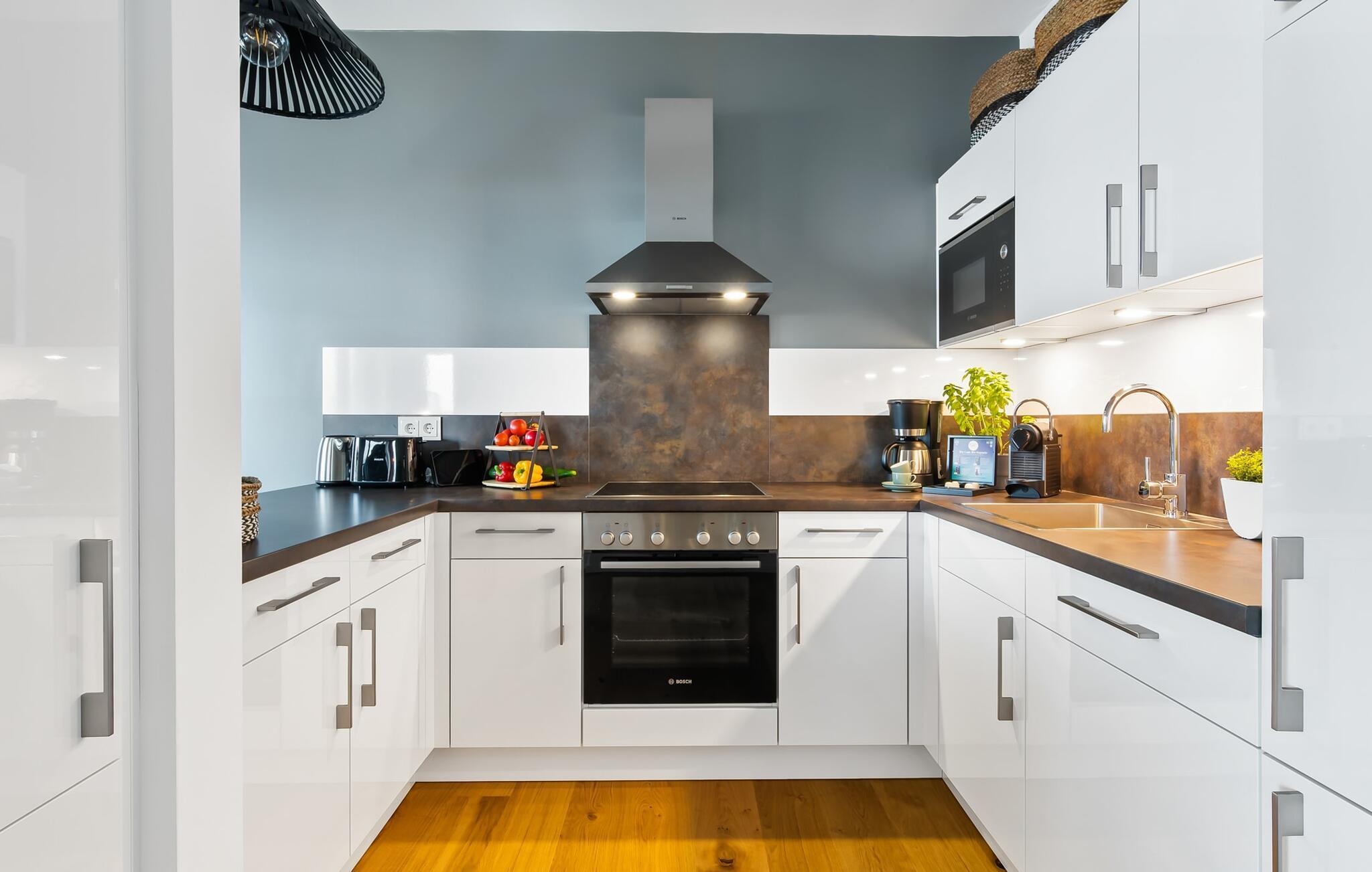Die Ausstattung der hochwertigen Küche, in der einem die Arbeit nicht als Arbeit erscheint, lässt keine Wünsche offen und das gemeinsame Kochen ist ein echtes Erlebnis.