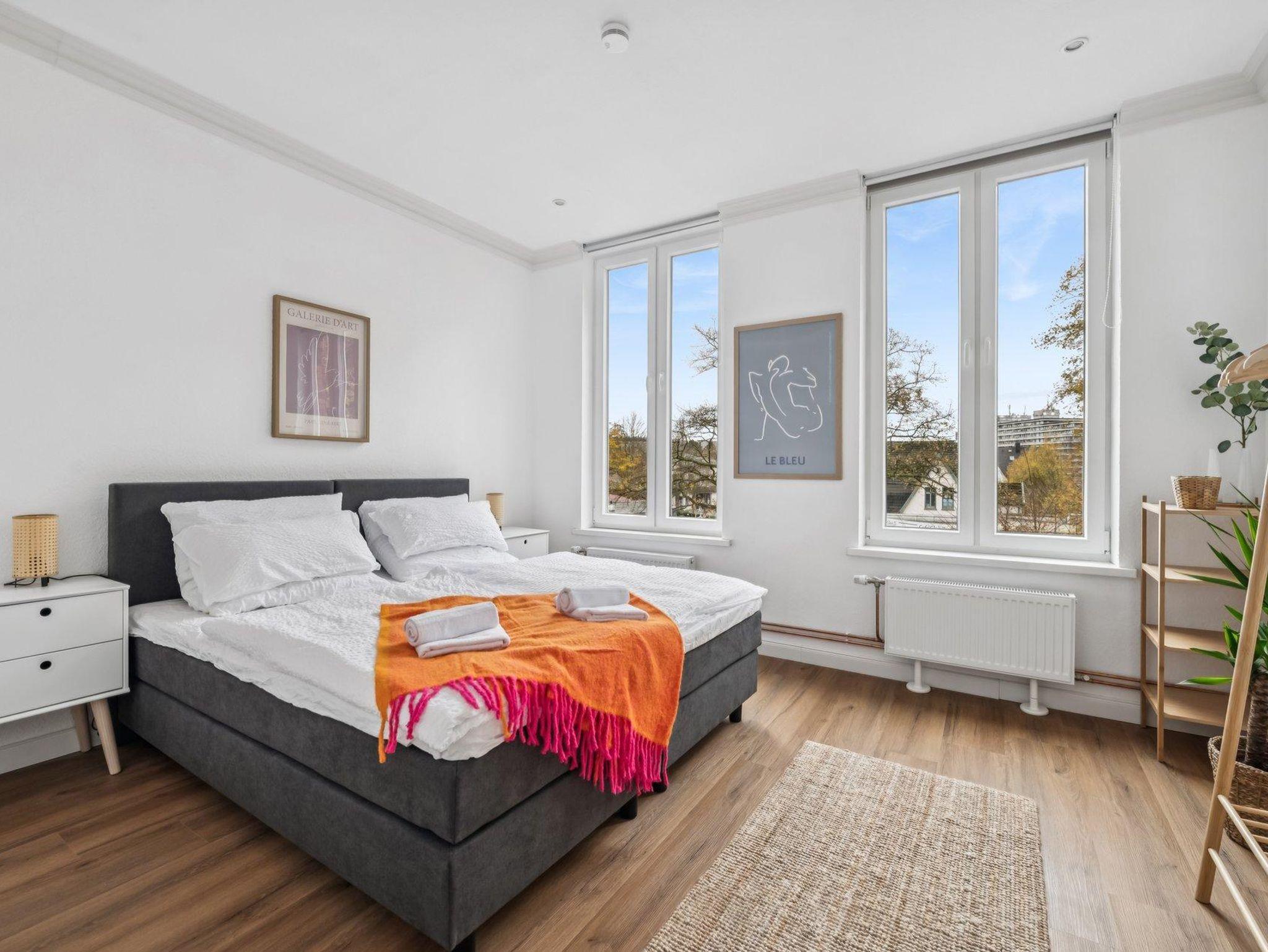 Willkommen in unserer stilvollen Ferienwohnung mit einer großzügigen Fläche von 150 Quadratmetern. Die Unterkunft bietet vier helle, komfortable Schlafzimmer, die Ihnen erholsamen Schlaf und Privatsphäre garantieren. Der Wohnbereich ist modern möbliert mit einer Sitzgruppe und angrenzendem, großflächigem Balkon, der zum Verweilen einlädt.