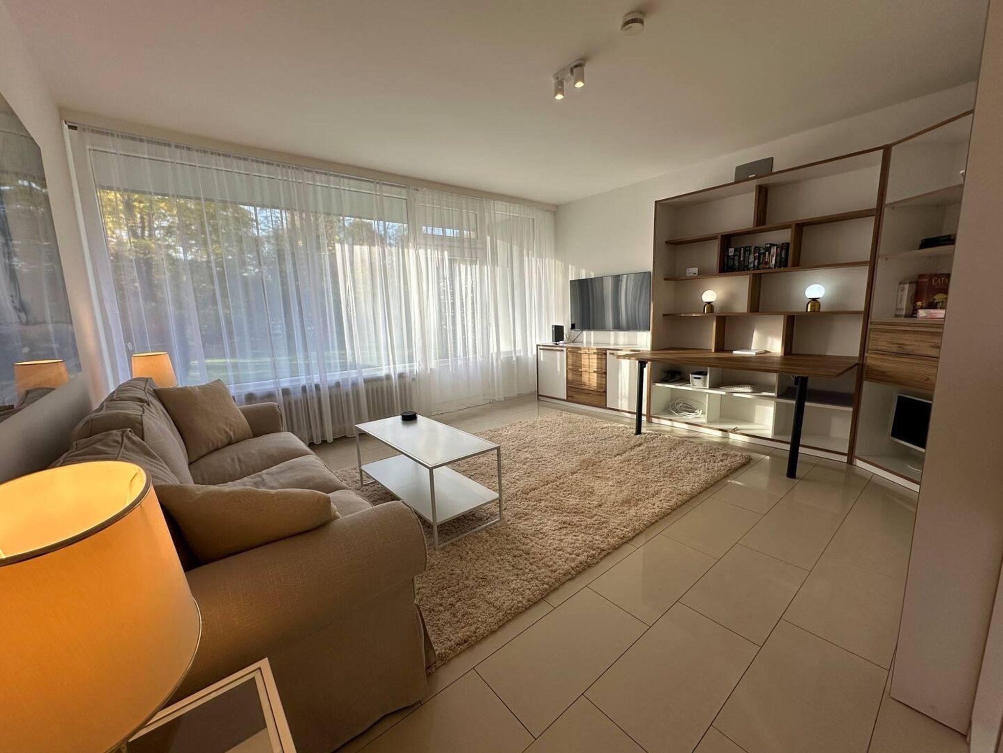 Die gemütliche 1-Zimmer-Ferienwohnung mit separater Küche befindet sich im Erdgeschoss eines Mehrparteienhauses. Sie verfügt über einen Wohnraum mit Sofaecke, TV, Schreibtisch und Schrankbett, ein Badezimmer mit Dusche und WC, eine Küche mit Kaffeevollautomat und Essplatz und eine Terrasse. Auf der Terrasse stehen Sitzmöbel und eine Hängematte zur Verfügung. Waschmaschine und Trockner stehen gegen Gebühr im Gemeinschaftstrockenkeller zur Verfügung.