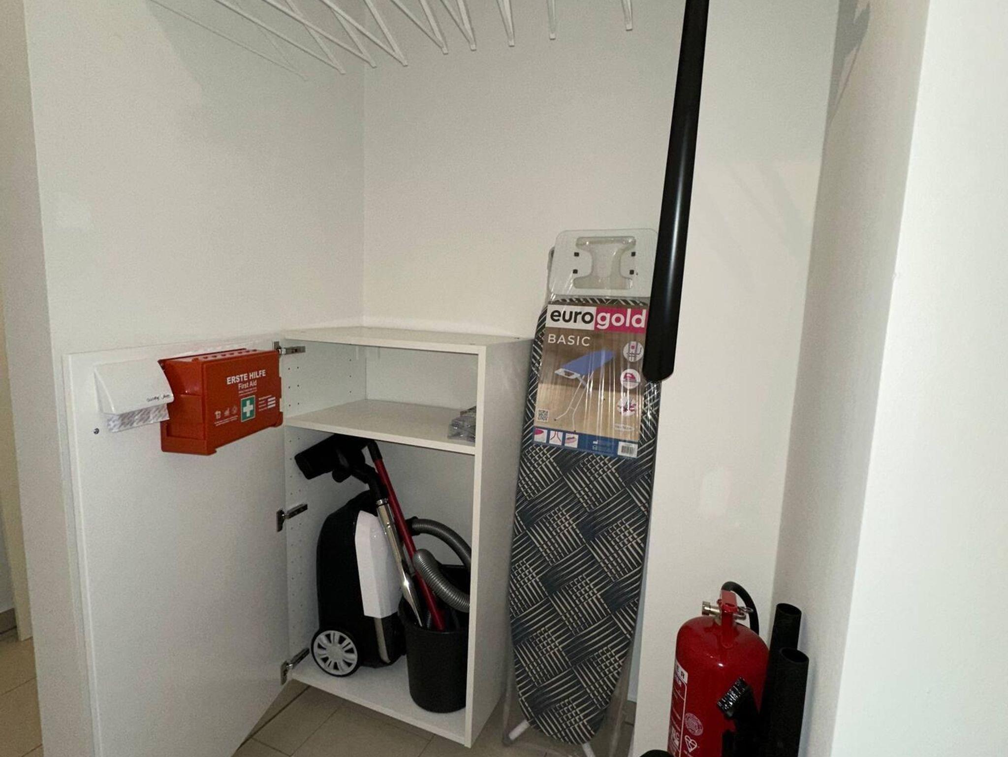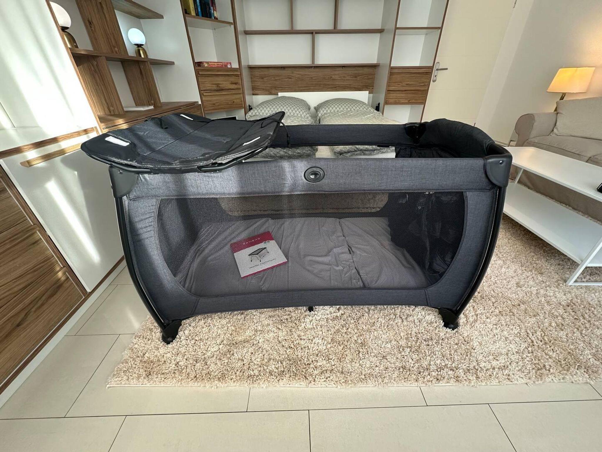 Für Babys befinden sich ein Baby-Reise-Bett, ein Babyphone, eine Babybadewanne, ein Bett-Rausfallschutz und Steckdosensicherungen in der Wohnung.