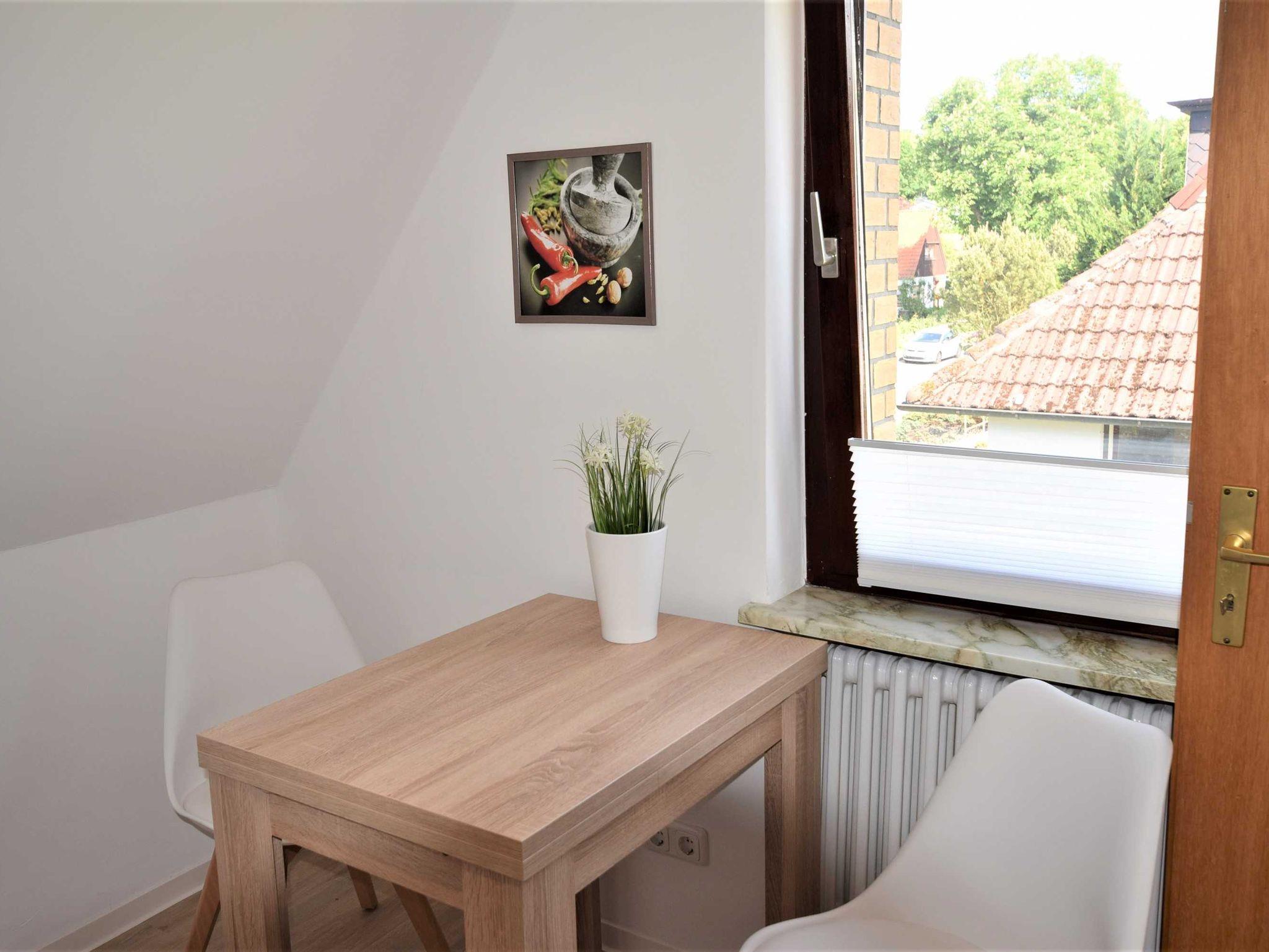 Die Ferienwohnung befindet sich in ruhiger Lage im OG eines freistehenden Hauses. Sie hat eine Größe von 50 m² und ist für 2 Personen ausgestattet: Wohnzimmer, Schlafzimmer mit Doppelbett, Duschbad mit WC, komplett ausgestattete Küche mit Essplatz, Balkon mit Gartenmöbeln.