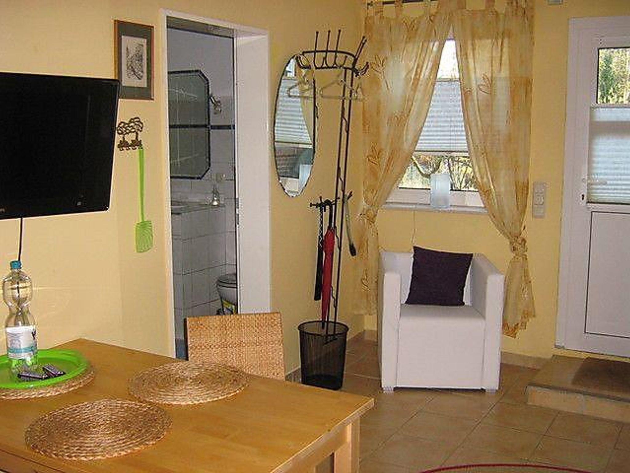 Das Ferienhaus an der Schwentine verfügt über eine ebenerdige Ferienwohnung im Bungalowstil mit separatem Eingang. Die Ferienwohnung ist ca 30 m² groß und bietet neben einem Wohnzimmer mit offener Küchenzeile und einer Schlafcouch für eine Person einen weiteren Schlafraum mit zwei großen Einzelbetten und ein Badezimmer mit ebenerdiger Dusche und WC. Bei Bedarf können weiter ein Kinderbett und ein Kinderhochstuhl zur Verfügung gestellt werden.