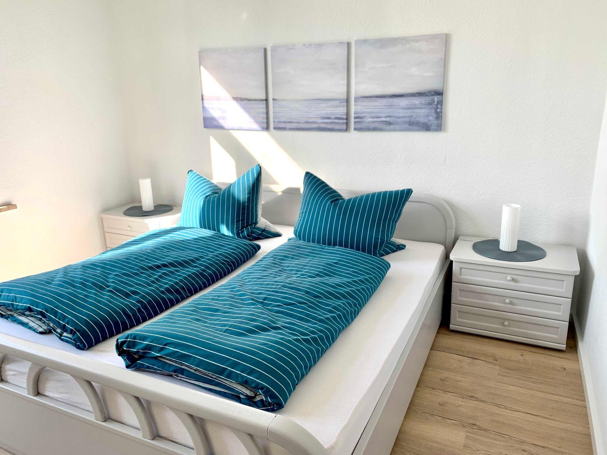 Die gemütliche und moderne Ferienwohnung verfügt über ein Wohn-/ Esszimmer, ein Schlafzimmer mit einem 2m x 2m großem Bett und eigenem TV, ein Kinderzimmer mit zwei Einzelbetten, einem neuen Bad mit großzügiger Dusche, einer neuen Küche mit Geschirrspüler, Herd und Backofen.