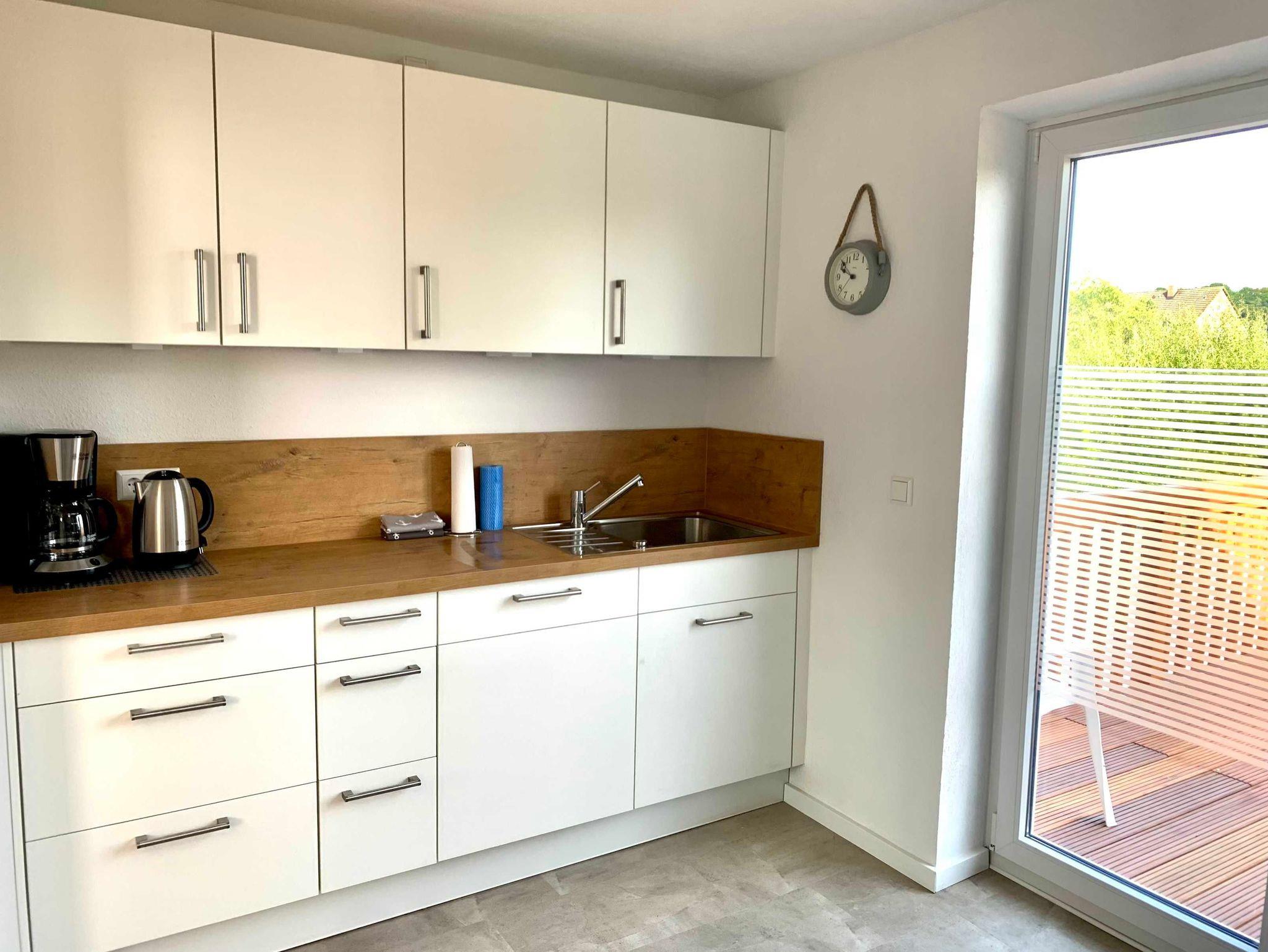 Moderne Ferienwohnung in Malente mit Dachterrasse, Küche und gemütlicher Einrichtung für erholsame Ferien.