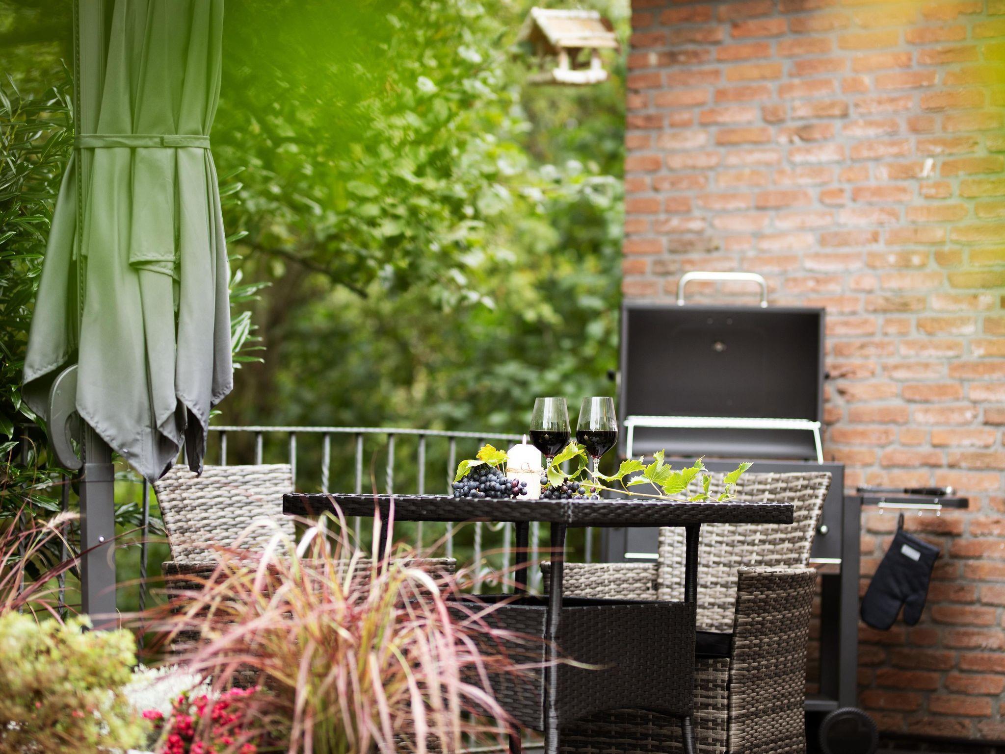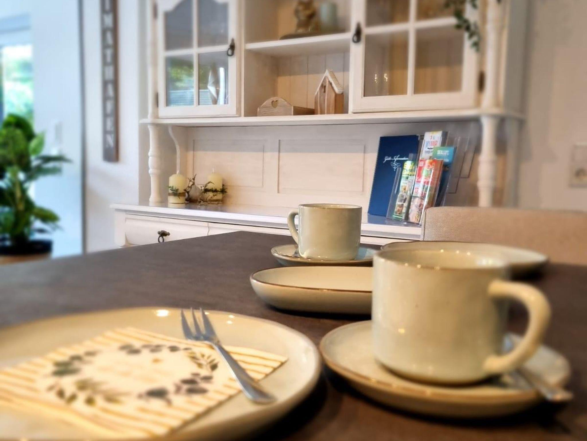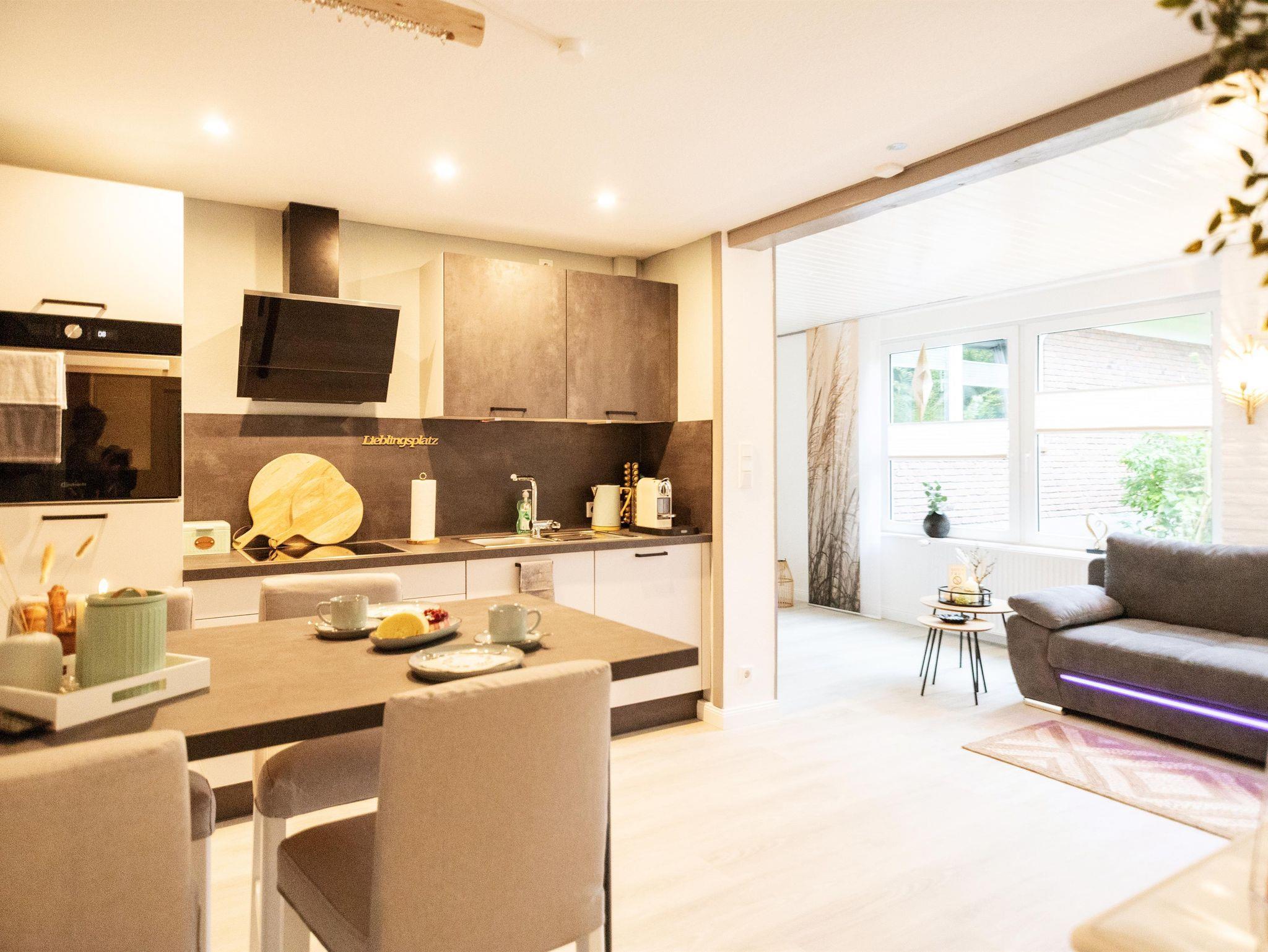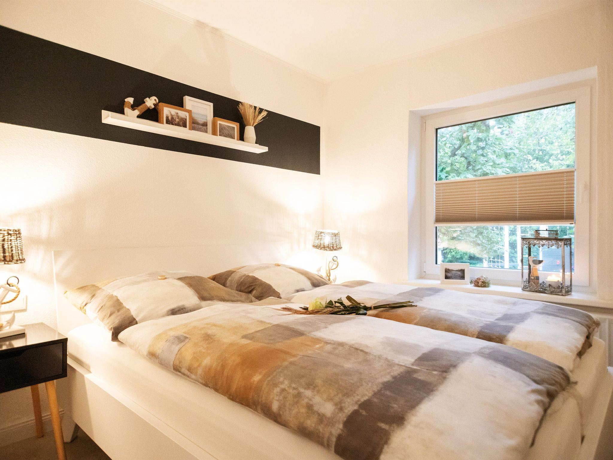 Die Wohnung eignet sich für 2 Erwachsene und 2 Kinder. Es gibt ein Doppelbett im Schlafzimmer sowie ein Boxspring-Schlafsofa für max. zwei Personen im Wohnzimmer. Es gibt eine Terrasse zur Südseite mit Garten und Kinderspielplatz mit Klettergerüst. Von hier haben Sie Blick in den Garten und in die Felder.