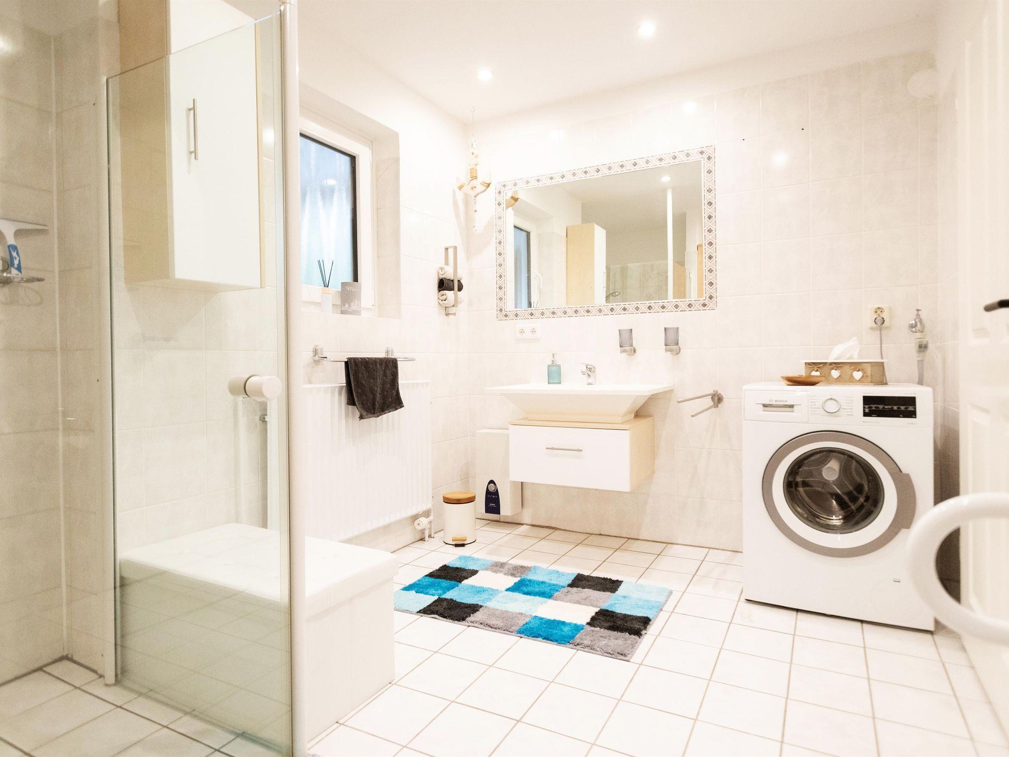 • Barrierefreies Bad mit WC, Bidet, großer Regendusche & Waschmaschine