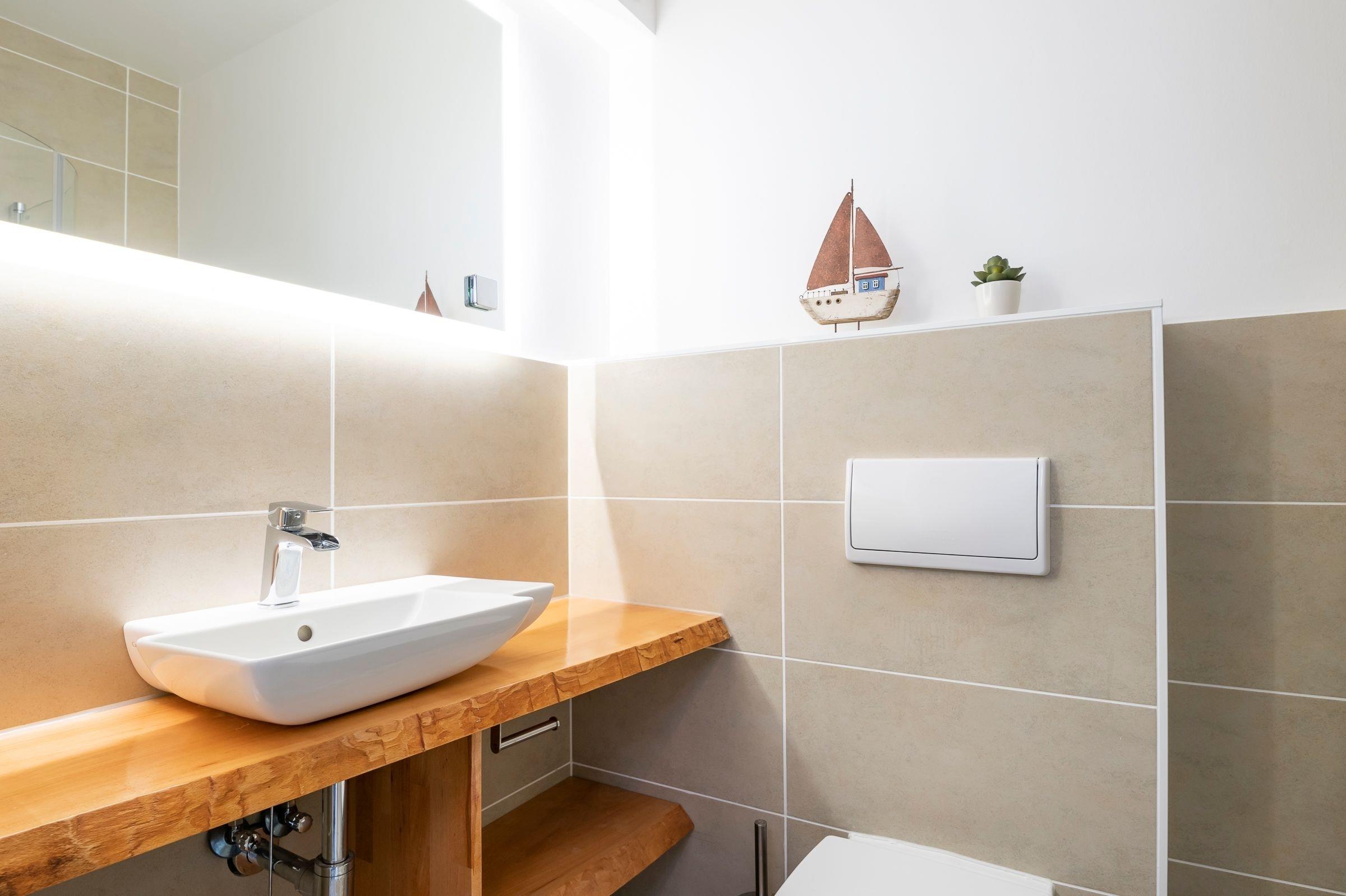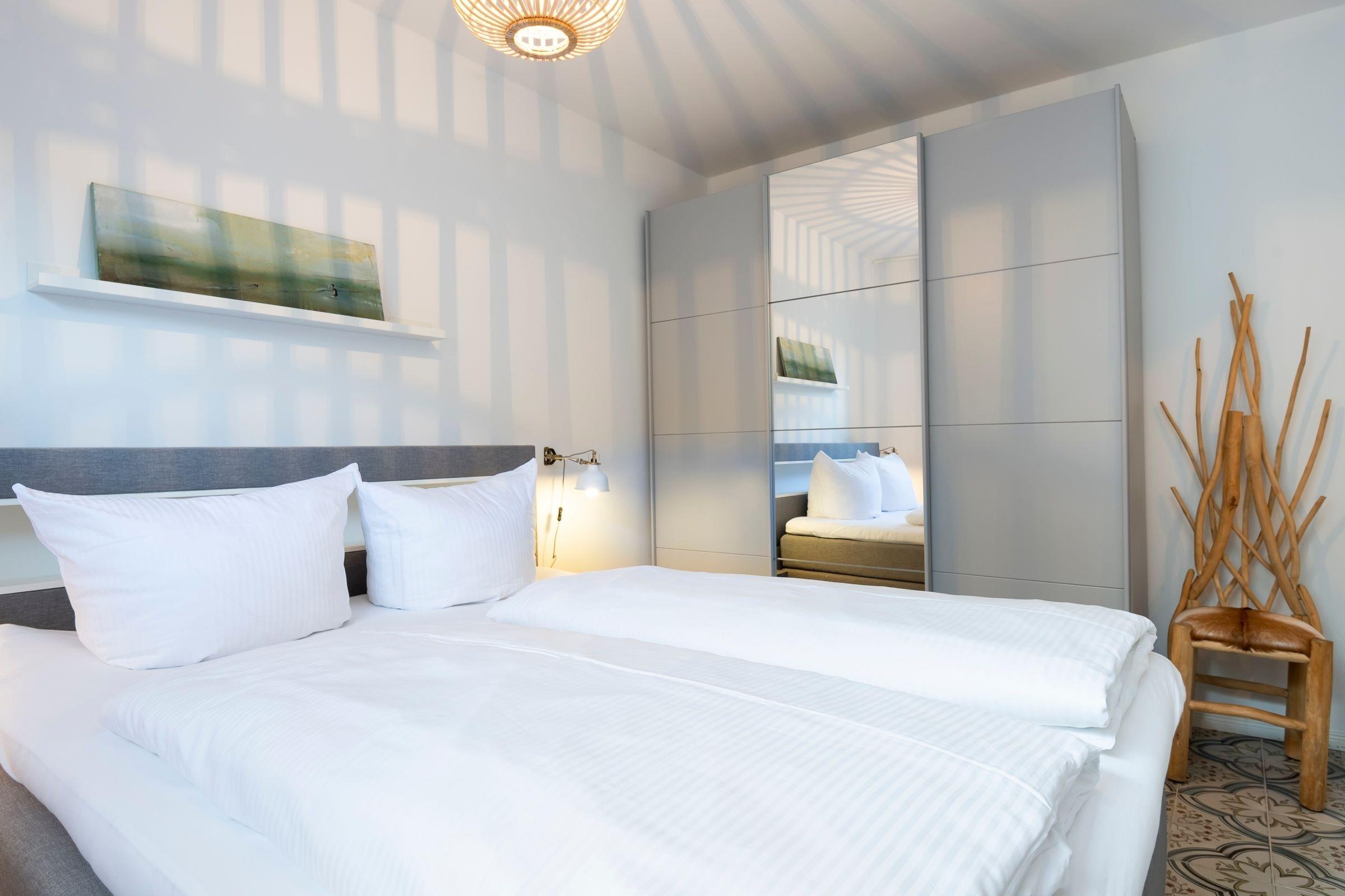 Im stilsicheren Wohnbereich mit offener Küche können Sie entspannen und sich nach ereignisreichen Erkundungstouren durch die Region mit selbst zubereiteten Köstlichkeiten stärken. Durch die große Glasfront im Wohnzimmer haben Sie freie Sicht auf den See und werden auf der Terrasse bestimmt viele gemütliche Stunden verbringen - auch im Frühjahr oder Herbst lässt es sich hier gut aushalten, wenn Sie sich mit Decken in den Strandkorb kuscheln. Das gemütliche Doppelbett (160x200cm) im separaten Schlafzimmer mit Kleiderschrank wartet schon auf Sie - hier können Sie Kraft für einen neuen Urlaubstag tanken. Den nächsten Morgen beginnen Sie mit einer erfrischenden Dusche im geschmackvollen Badezimmer.