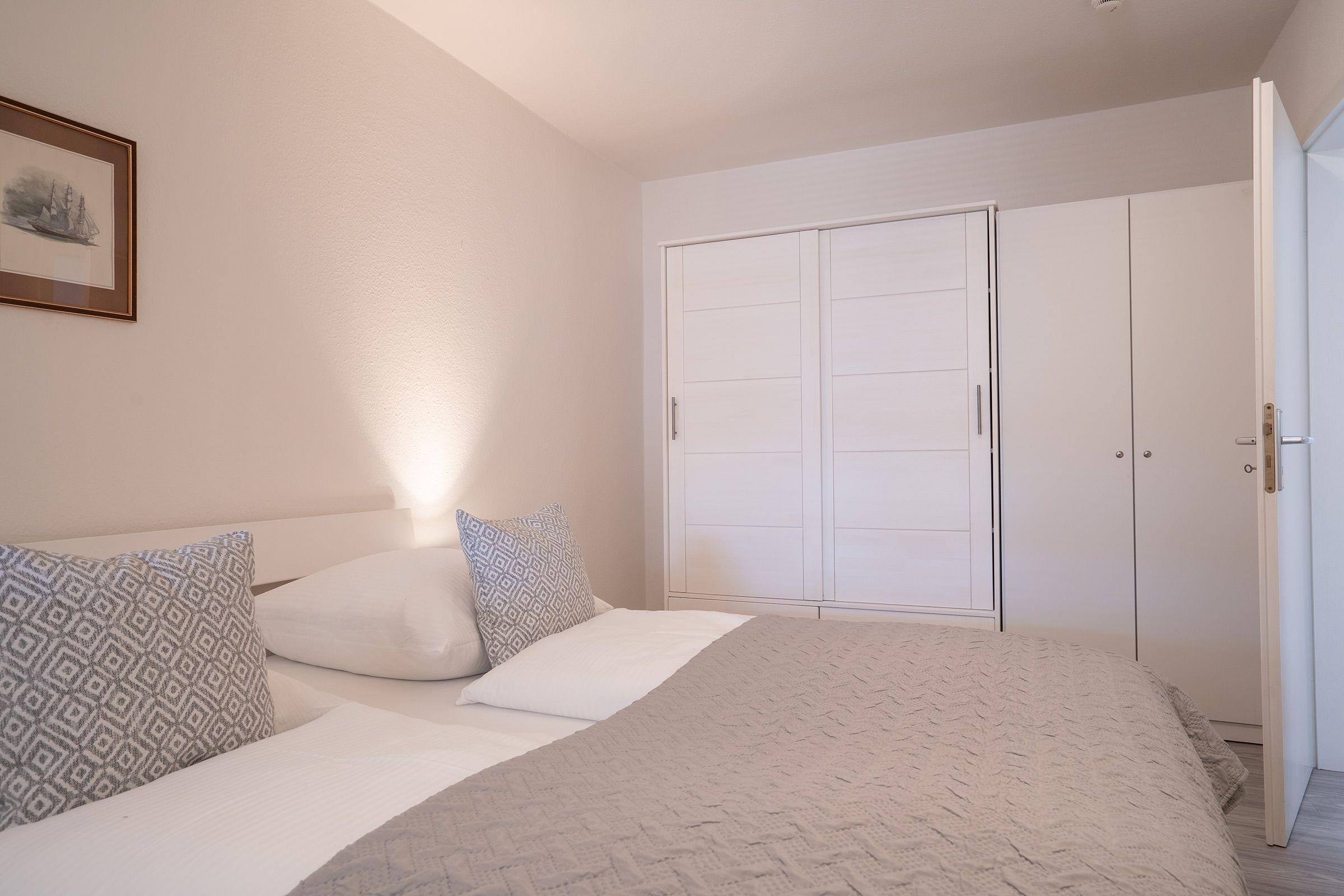 Schlafzimmer 1: Doppelbett (2 x 90x200 cm), Kleiderschrank, Verdunkelungsmöglichkeit
