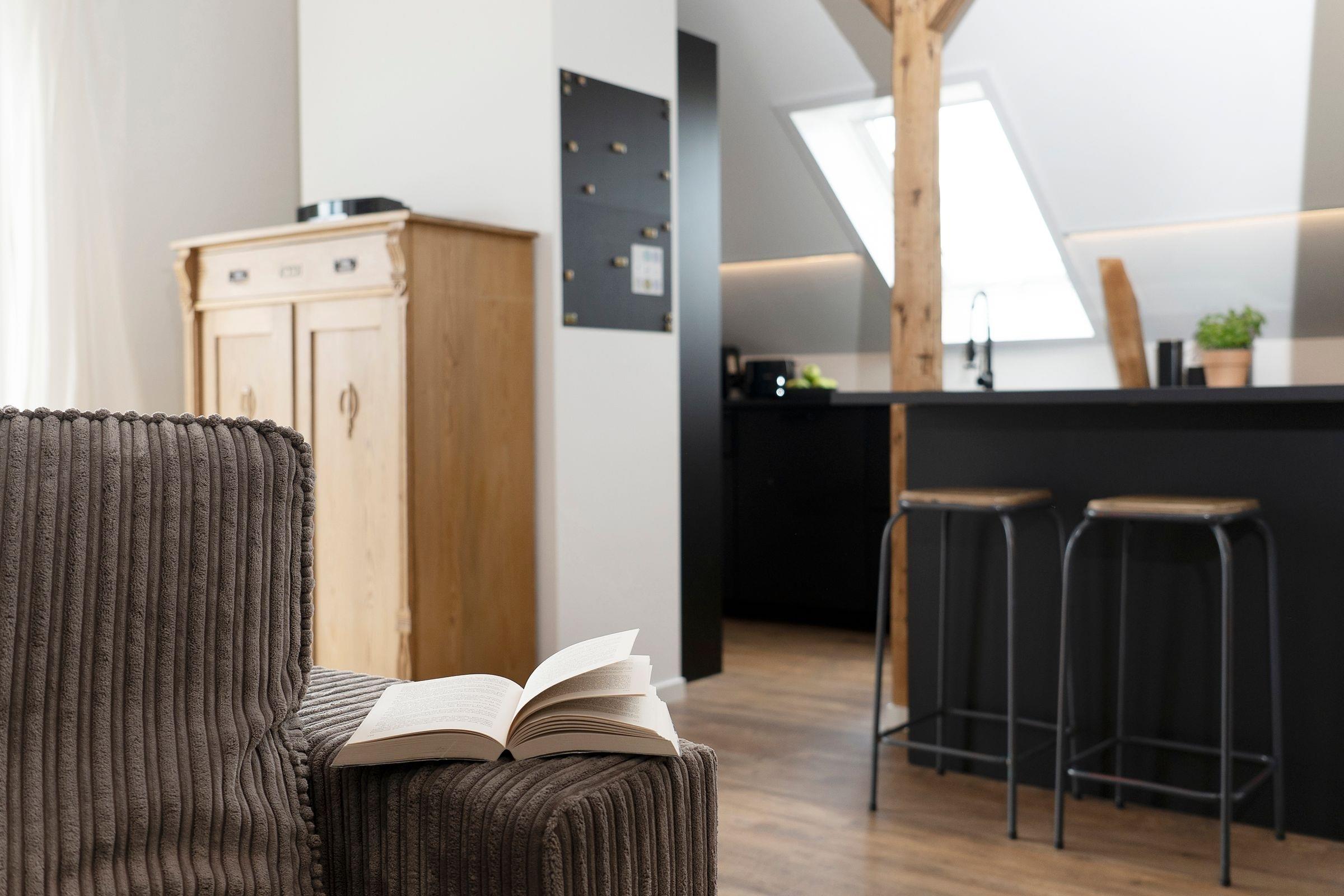 Die Ferienwohnung verfügt über einen großzügigen Wohn-/Essbereich mit offener Küche, die keine Wünsche offen lässt. Beide Schlafzimmer sind jeweils mit einem komfortablen Doppelbett (160x200 cm) ausgestattet. Das modern und sehr geschmackvoll eingerichtete Badezimmer bietet alles was Sie brauchen. Genießen Sie die schöne Aussicht über die Dächer von Malente mit Blick auf den Kellersee.
