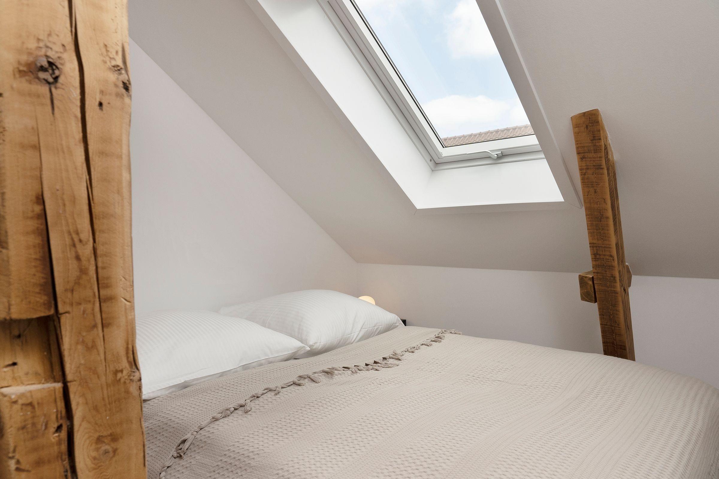 Schlafzimmer 2: 1 Doppelbett (160x200 cm), TV, Verdunkelung (Plissee), kein Platz für ein Babybett