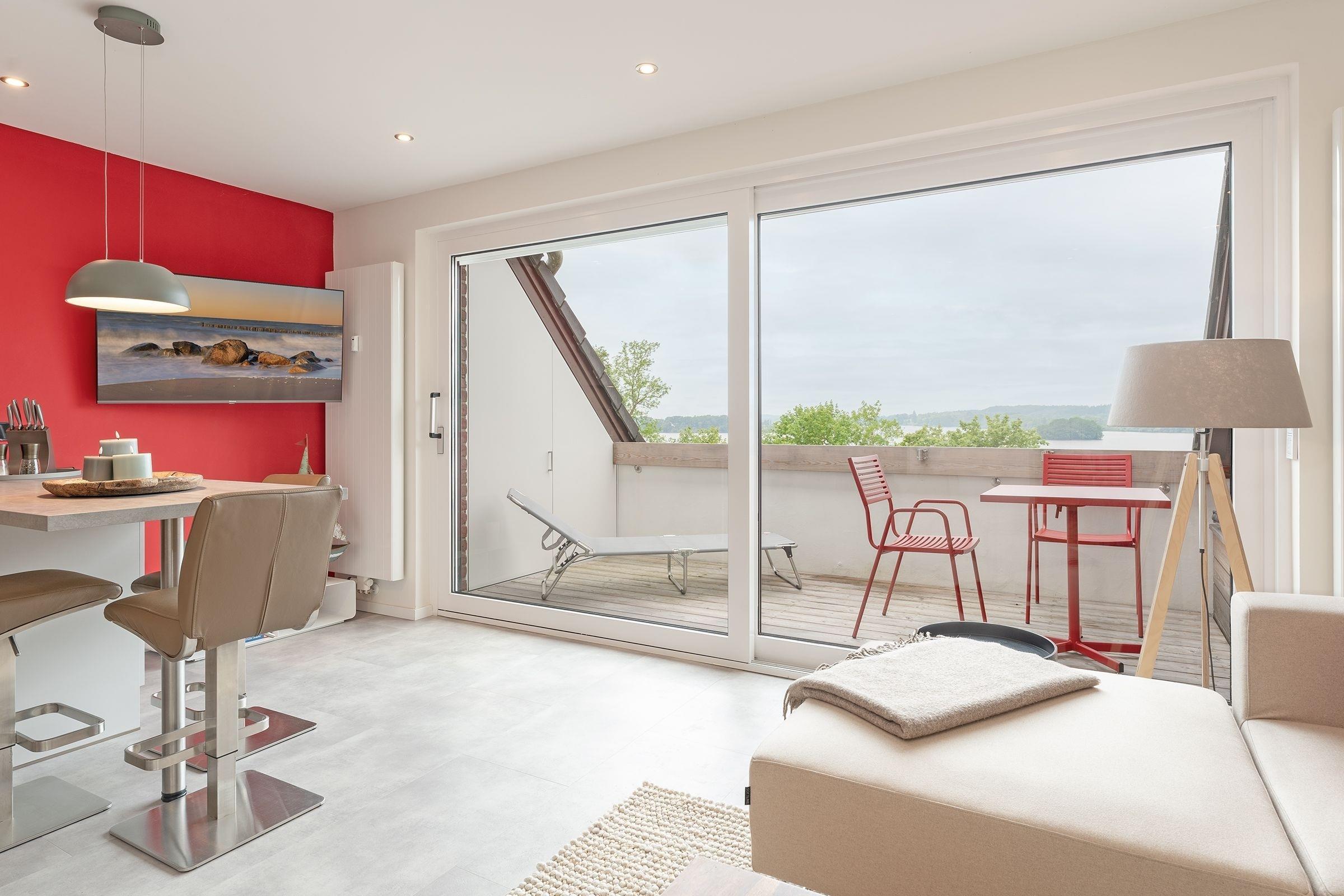 Diese stilvolle Ferienwohnung in Malente bietet Seeblick, Balkon und moderne Ausstattung für einen erholsamen Urlaub am Dieksee.