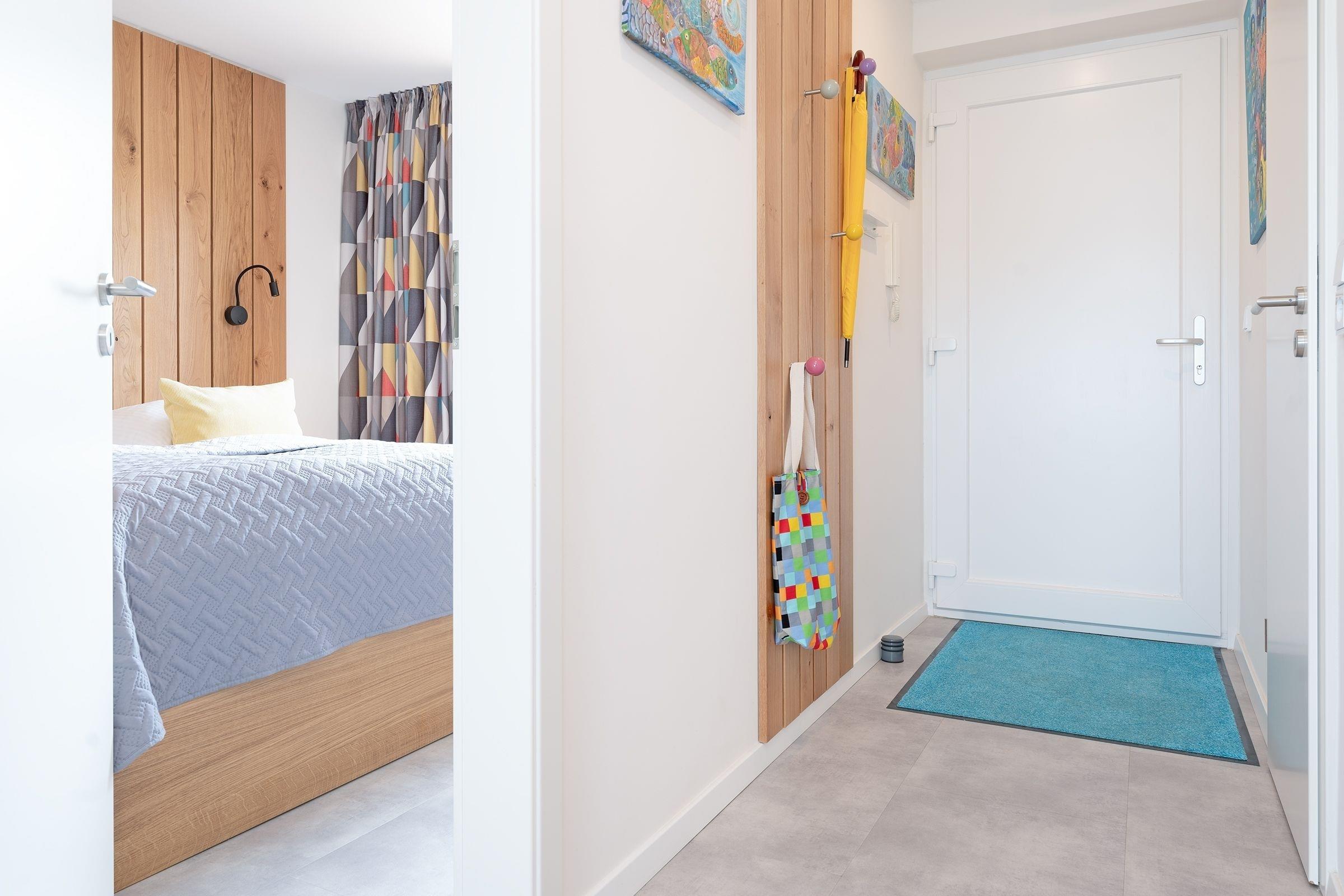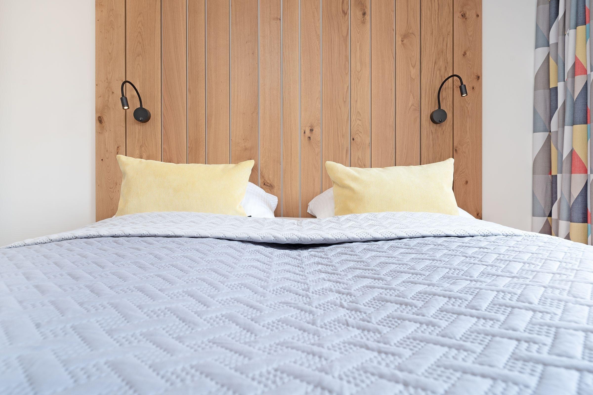 Mit dem Fahrstuhl gelangen Sie unbeschwert in die 3. Etage Ihrer Ferienwohnung des Hauses Dieksee Holm. Im stilvoll eingerichteten Wohnbereich erwartet Sie ein komfortables Sofa und ein moderner Sessel, die zum Entspannen vor dem Flachbildfernseher einladen. Die offene und vollausgestattete Küche lädt zum Kochen von köstlichen Urlaubsmahlzeiten ein. Der integrierte Tresen bietet Platz für alle Gäste. Das separate Schlafzimmer ist mit einem Doppelbett (180x200 cm), Kleiderschrank und TV ausgestattet. Für mehr Platz lassen sich Ihre Koffer bequem unterhalb des Bettes verstauen.