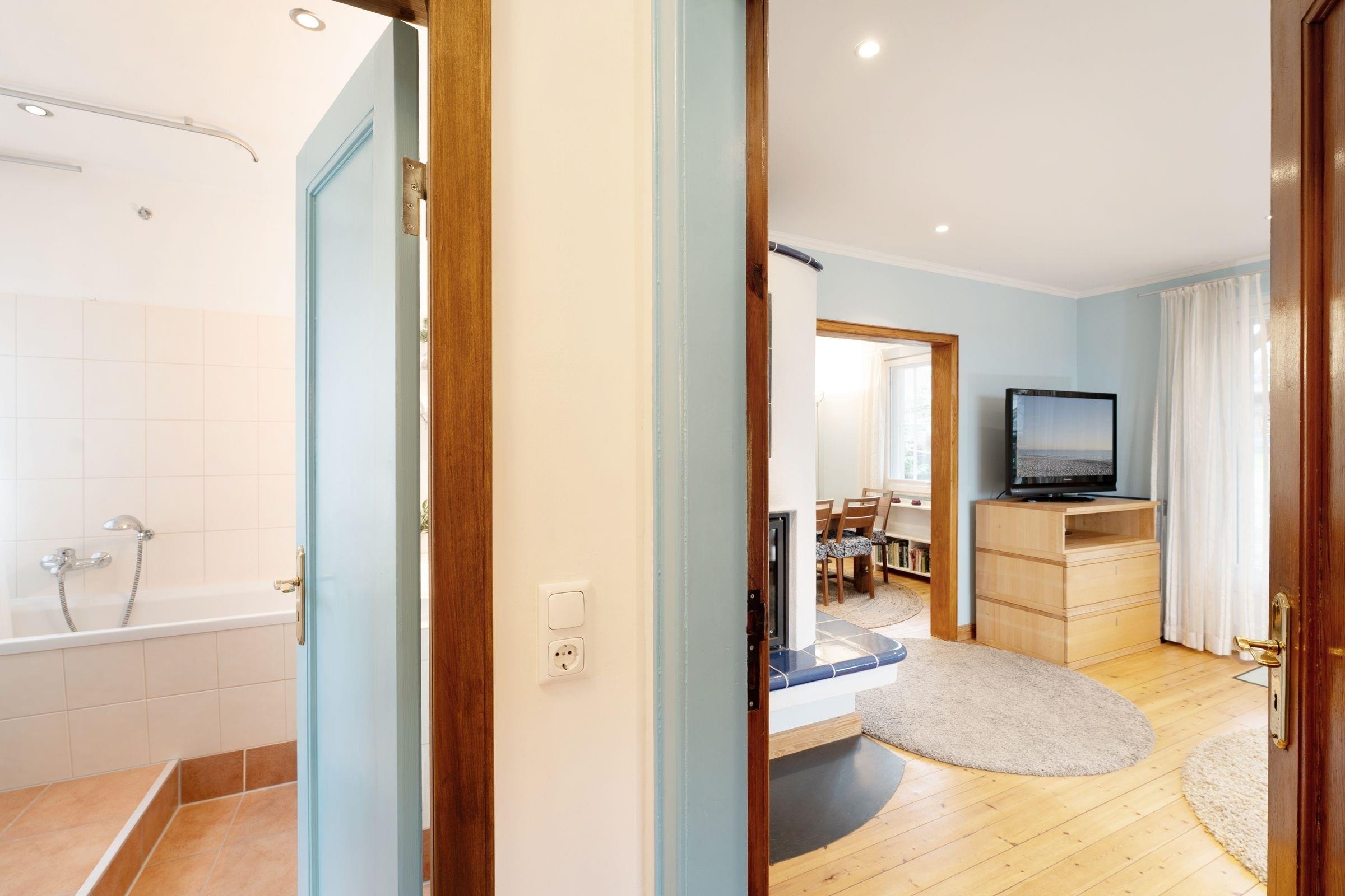 Es empfängt Sie ein gemütlicher Wohnbereich, in dem Sie Ihre Urlaubstage auf den bequemen Sofas vor dem TV-Gerät ausklingen lassen können. Von hier gelangen Sie auch in den großzügigen Garten zur Eigennutzung. Erholen Sie sich auf der Sonnenliege bei einem guten Buch oder lassen Sie einfach Ihre Seele baumeln. Planen Sie ausgiebige Grillabende? Die Terrasse mit Süd-Ausrichtung bietet hierfür jede Möglichkeit und garantiert Ihnen viele sonnige Stunden im Freien. Bereiten Sie sich leckere Speisen in der separaten Küche, die über eine gute Grundausstattung verfügt. Der schöne Essraum bietet viel Platz für gesellige Abende. Verbringen Sie nach einem ereignisreichen Urlaubstag erholsame Stunden im bequemen Doppelbett (2x 80x200 cm). Die übrigen Urlaubsgäste finden Ihre Nachtruhe in einem weiteren Schlafzimmer mit Doppelbett (160x200 cm). Abgerundet wird dieses Feriendomizil durch ein schönes Badezimmer, das mit beheizbarem Handtuchhalter für einen kuscheligen Start in den neuen Tag sorgt, sowie einem Gäste-WC im Obergeschoss.