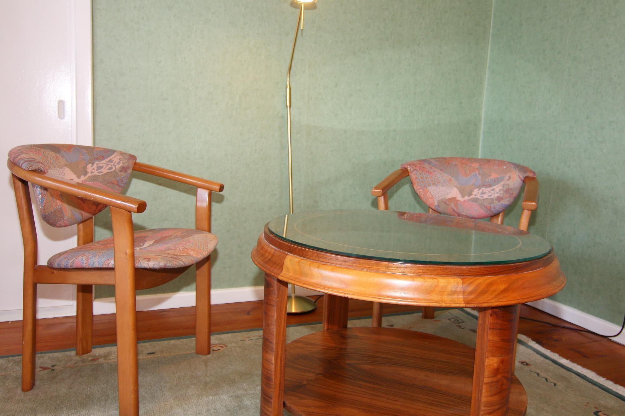 In der 1. Etage: (Küche(Wasserkocher, Toaster, Kochherd(4 Kochplatten, Ceranfeld), Kaffeemaschine, Backofen, Mikrowelle, Kühlschrank), Wohn/Esszimmer(Doppelschlafcouch, TV(Satellit), Esstisch(4 Personen), Radio), Schlafzimmer(Doppelbett(200 x 180 cm)), Badezimmer(Dusche, Waschbecken, Toilette, Föhn), Wintergarten(Einzelklappbett , Sitzecke)) TV(Satellit), Radio, CD-Spieler, Grill, Heizung(Öl), Garten, Fahrradabstellraum, Gartenmöbel, Parkplatz, Sonnenschirm, Hochstuhl, Babybett (kostenlos), Handtücher/Bettwäsche (inklusive)