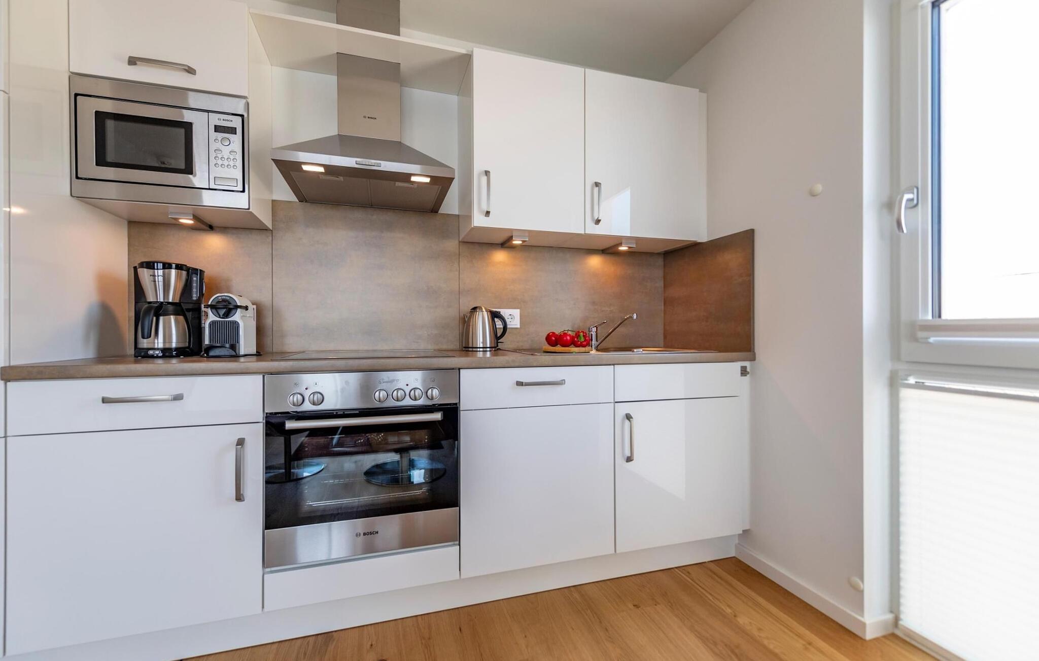 Die umfangreich ausgestattete offene Küche lässt keine Wünsche offen. Hier lassen sich köstliche Urlaubsmahlzeiten zaubern. Der Balkon lädt zu einem Grillabend bei Wasserblick ein.