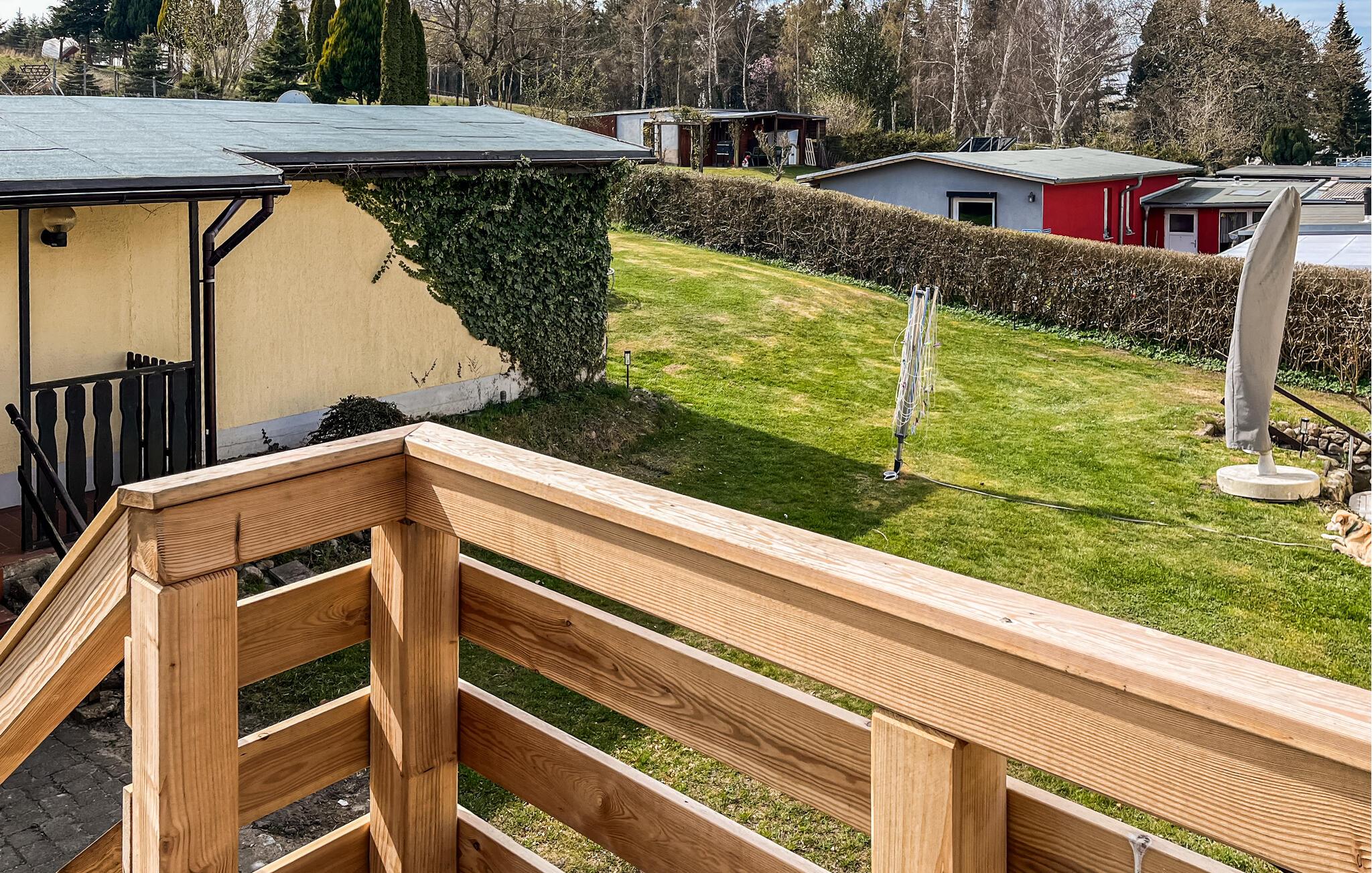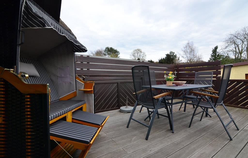 Von hier aus gelangen Sie auf die Terrasse, mit einem Strandkorb, auf der Sie den Tag mit einem ausgedehnten Frühstück starten oder den Abend beim gemeinsamen Grillen im Garten ausklingen lassen können. Abstellmöglichkeiten für Fahrräder sind in einem Schuppen gegeben. Das auf der gegenüberliegenden Straße befindliche Grundstück ist zur gemeinsamen Nutzung samt Gartenmöbel.
