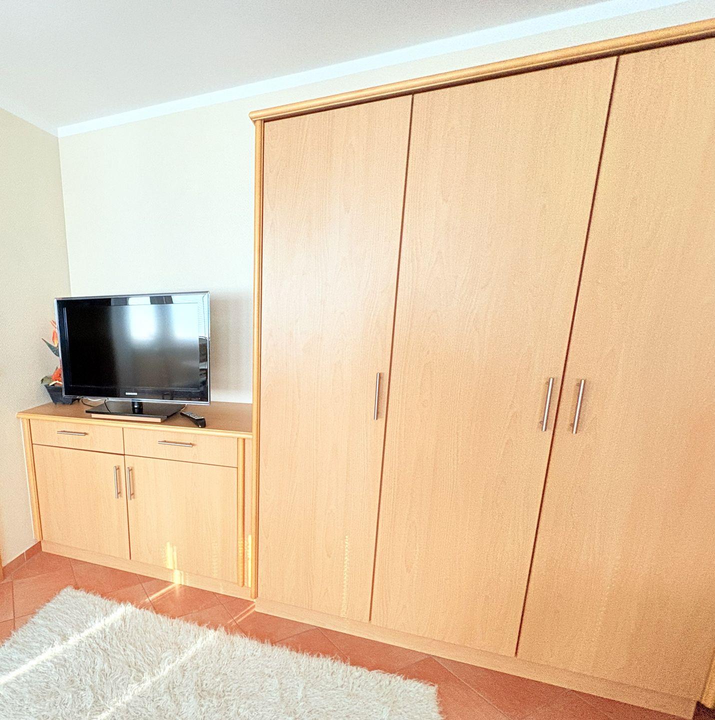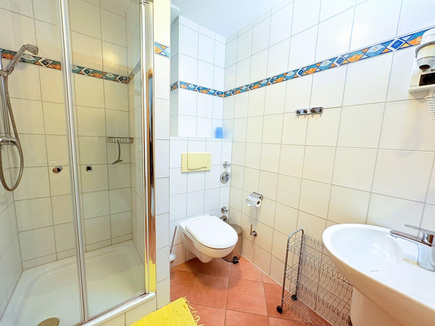 Wohnung 2 für 4 Personen, im ersten Obergeschoss gelegen, bietet auf 48 m² ein offenes, lichtdurchflutetes Wohn-/Schlafzimmer mit integrierter Küchenzeile und Essecke. Das gemütliche Schlafzimmer ist mit einem Doppelbett ausgestattet. Highlight ist die eigene Dachterrasse, von der Sie eine wunderbaren Ausblick genießen.