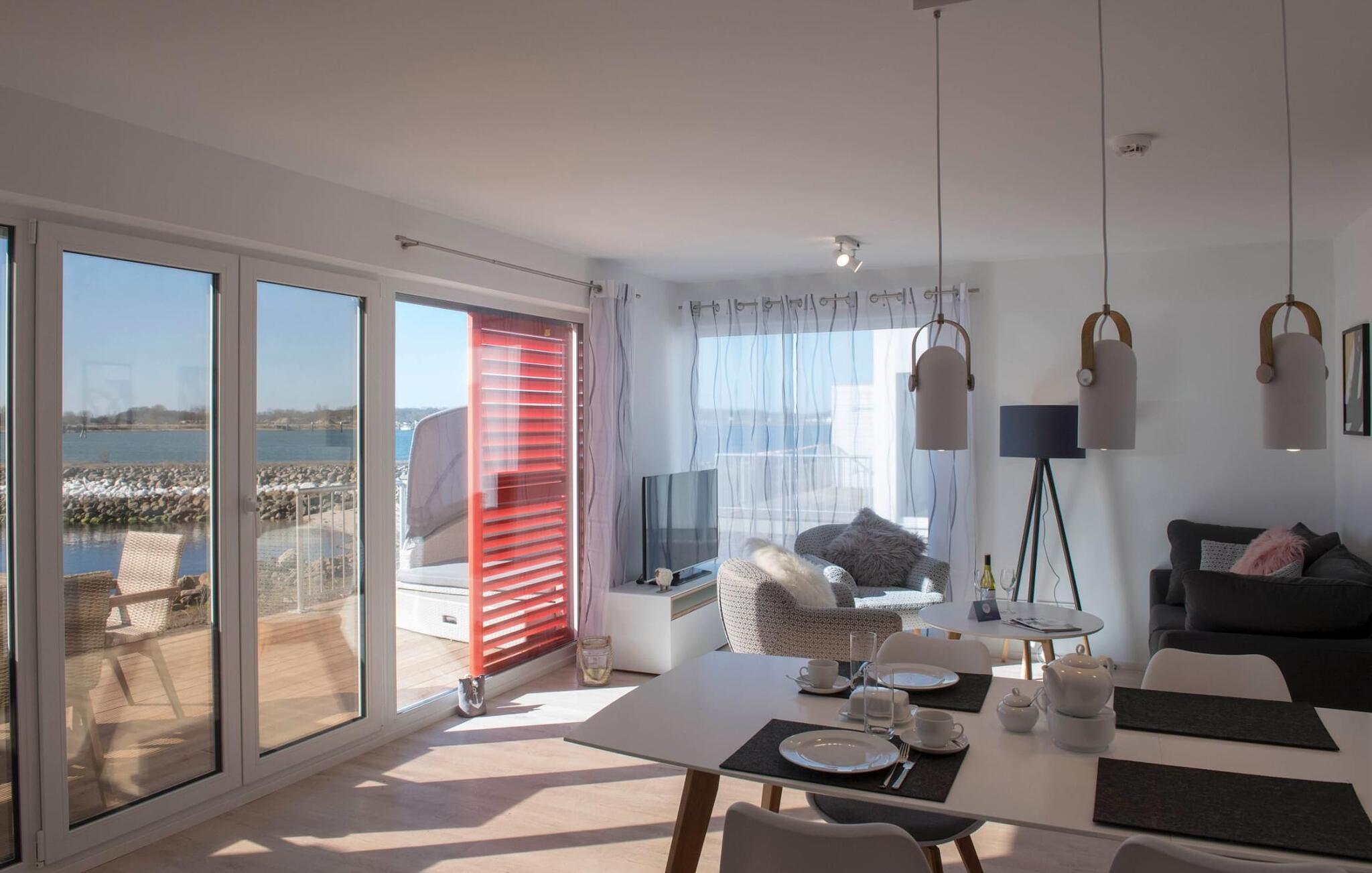 Genießen Sie entspannte Tage in dieser ebenerdigen Ferienwohnung mit Sauna, Whirlpool und traumhaftem Blick auf die Ostsee-Marina.