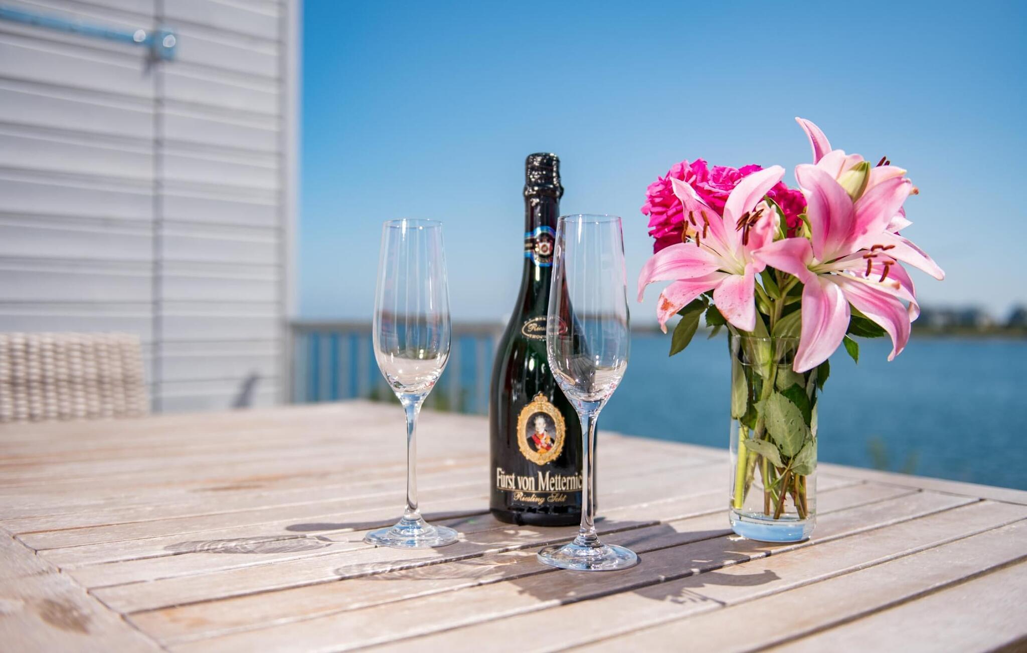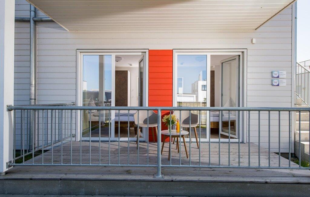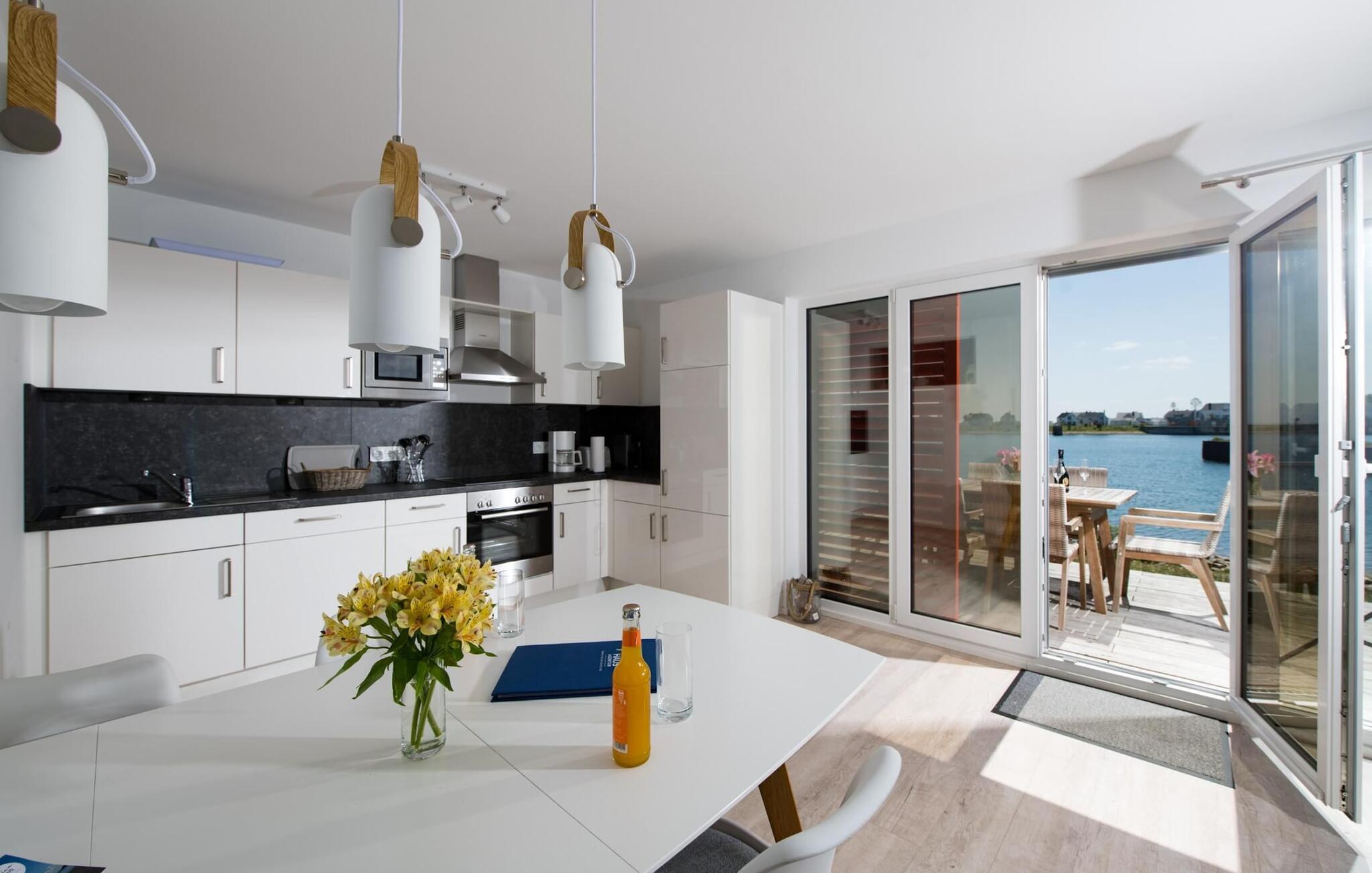 Traumhafte Aussichten eröffnen sich aus dem Wohnbereich und auf der angrenzenden Terrasse mit Blick über die Marina. Hafenkino sorgt hier für Unterhaltung während eines geselligen Grillabends oder romantischen Candle-Light-Dinners. Im Urlaub ist Zeit für kreatives Kochen, die rundum ausgestattete Wohnküche lässt hierbei keine Wünsche offen. Frühstücken direkt am Wasser, Urlaubsfeeling pur.