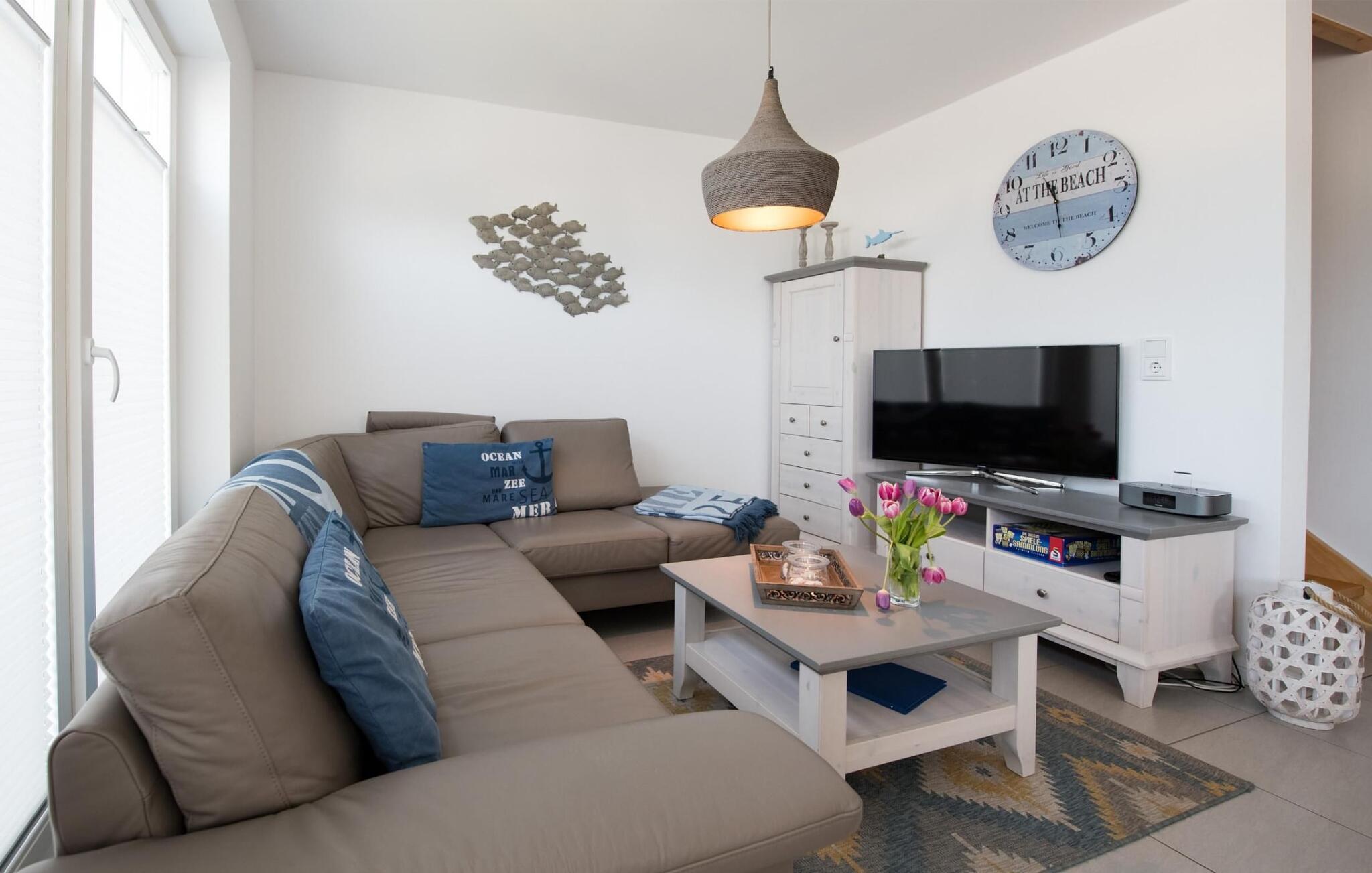 In unmittelbarer Nähe vom weißen Sandstrand des OstseeResort Olpenitz gelegen und mit einem fantastischen Blick über den Segel-und Sportboothafen überzeugt dieses Ferienhaus mit drei Sonnenterassen, einem privaten Wellnessbereich und einer stilsicheren Einrichtung im maritimen Landhausstil. Über drei Wohnebenen erstreckt sich das Beach House Marina View. Hell und freundlich besticht der Wohn- und Essbereich des Ferienhauses mit bodentiefen Fenstern und einer angrenzenden Terrasse mit ganztags Sonne. Der Blick fällt auf den Segel- und Sportboothafen des Resorts, Hafenkino garantiert. Während die offene Küche eine lückenlose Ausstattung und vollen Urlaubskomfort bietet, laden Esstisch und gemütliche Sitzlandschaft zum Verweilen ein.