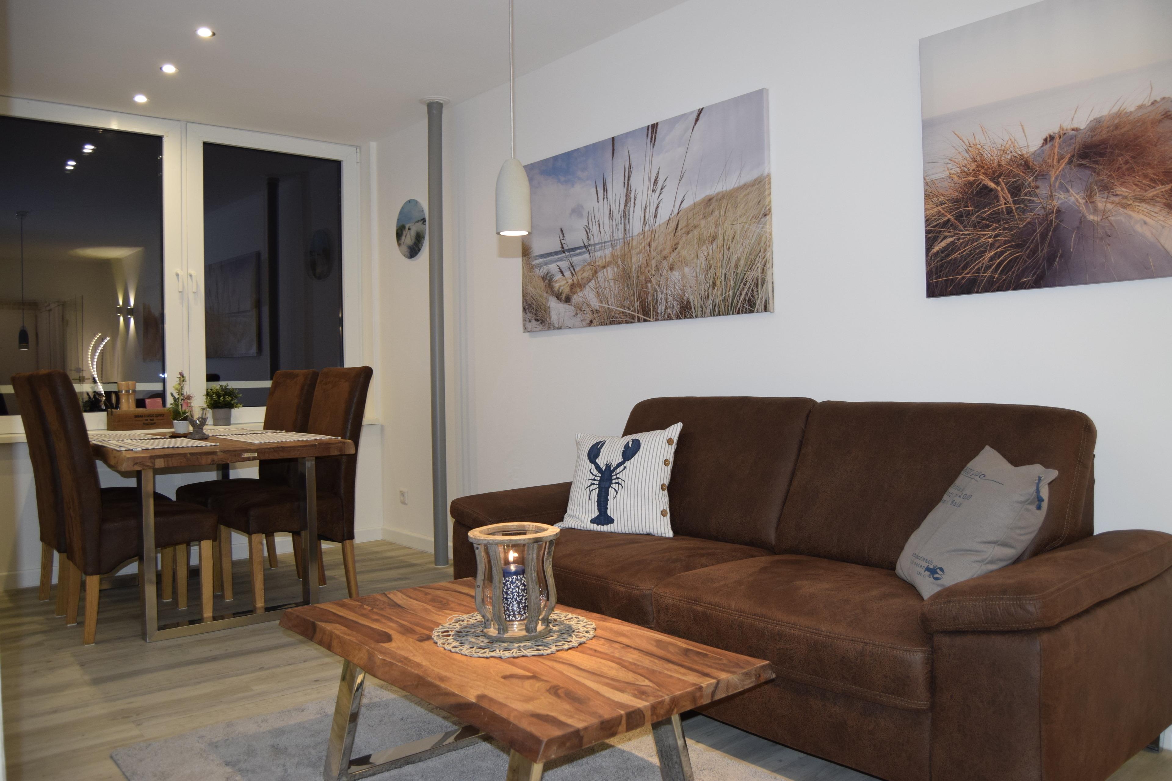 Die mit viel Liebe zum Detail eingerichtete Wohnung mit ihren 41 Quadratmetern ist der ideale Erholungsort für Singles, Paare oder Familien mit Kindern. Die Küche lässt es an nichts fehlen. Sie ist ausgestattet mit Spülmaschine, Mikrowelle, Backofen mit Umluft, Kühlschrank mit Gefrierfach, Toaster, Wasserkocher, Kaffeemaschine und Eierkocher. Das modern eingerichtete Bad mit Handtuchheizung bietet zusätzlich einen Fön sowie einen Kosmetikspiegel.