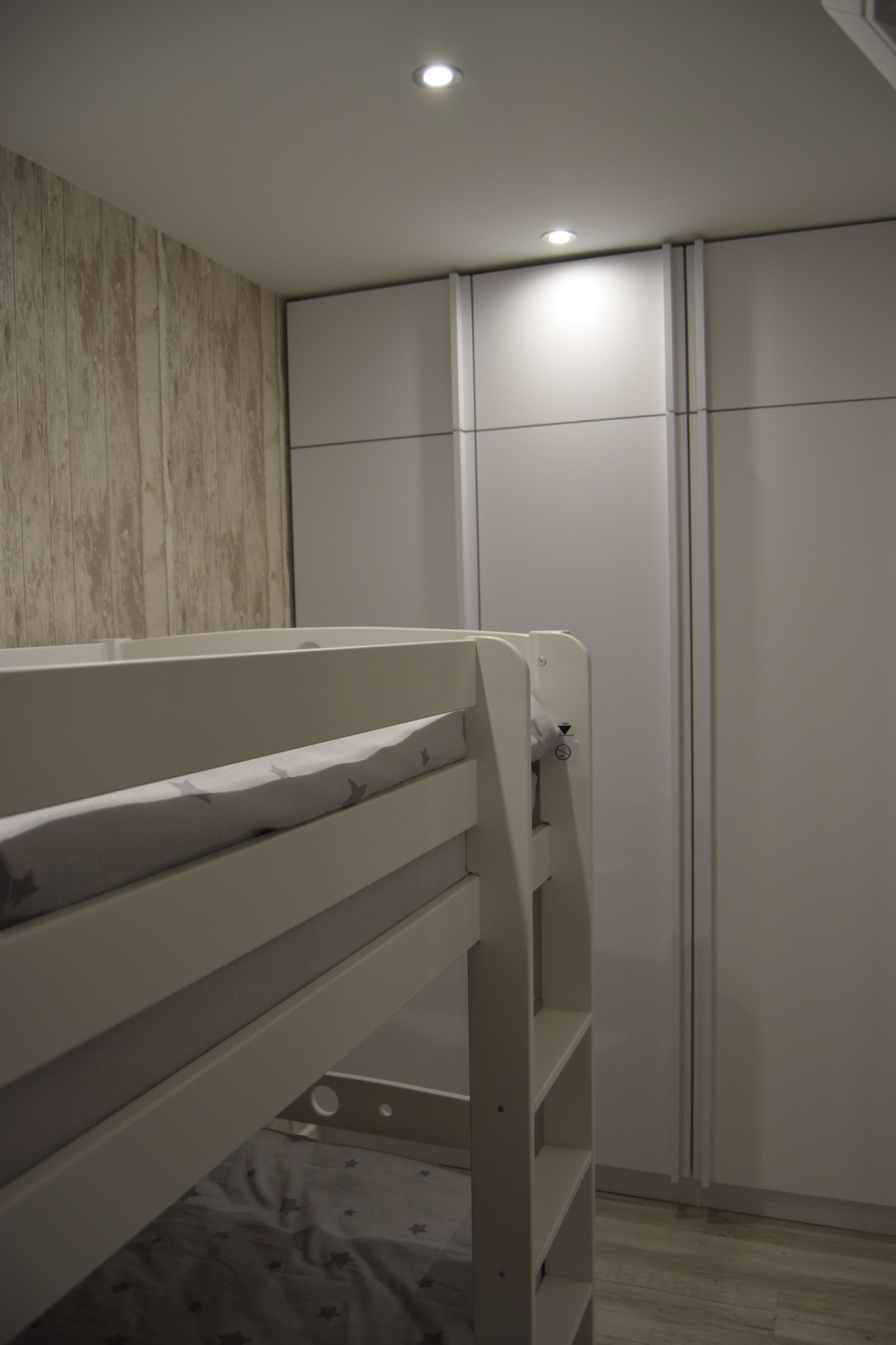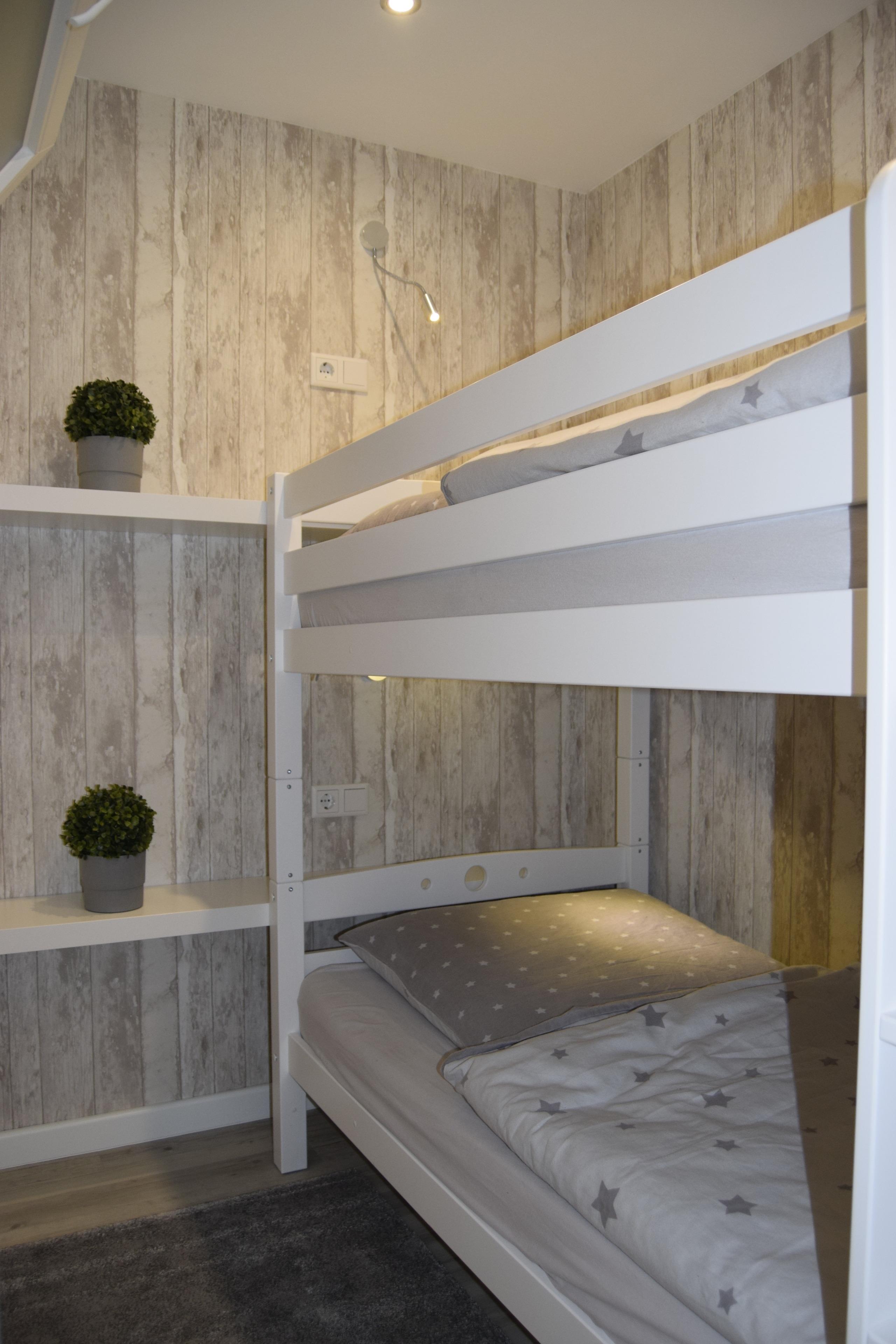 Im kombinierten Wohn- Schlafbereich befindet sich ein gemütliches Boxspringbett (1,80 x 2,00m), ein Smart TV, ein CD-Player sowie eine Musikabspielmöglichkeit. Vom großzügigen Fenster im Essbereich des Wohnzimmers haben Sie eine wundervolle Sicht über den Yachthafen Marina Wendtorfs und auf die vorbeifahrenden Schiffe auf der Ostsee. Das Kinderschlafzimmer ist mit einem Etagenbett aus Massivholz mit einer Liegefläche von (0,90 x 2,00m) ausgestattet und wird über ein Lüftungsfenster über den kombinierten Wohn- Schlafbereich belüftet.