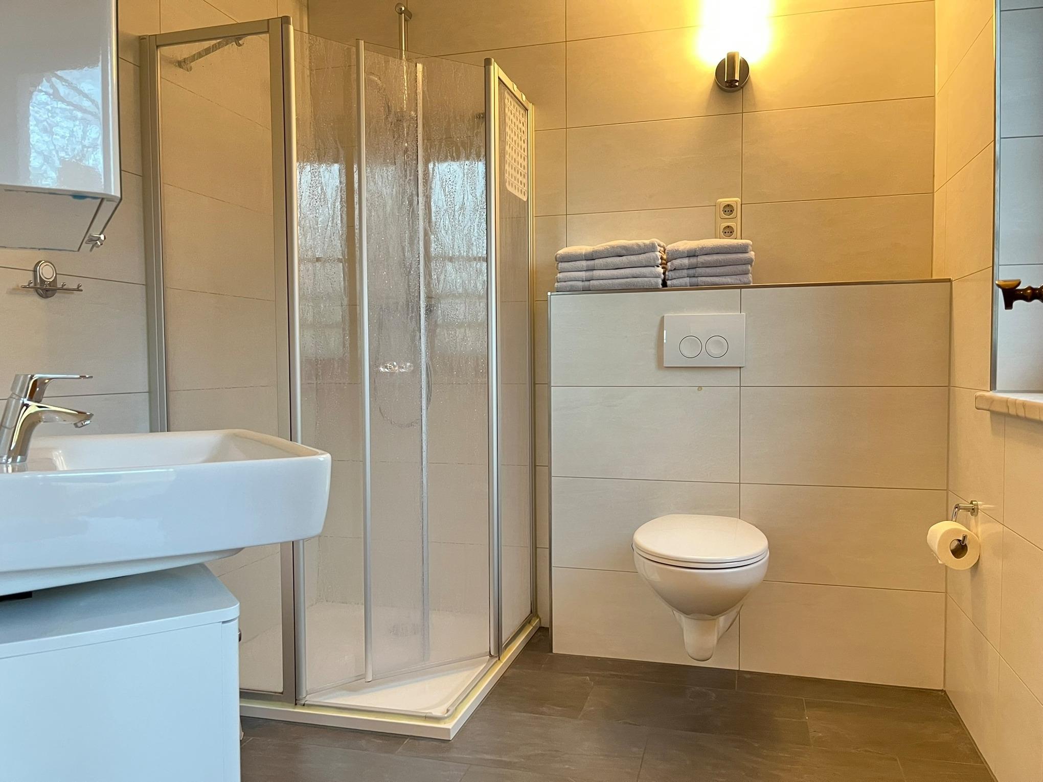 Im Erdgeschoß befindet sich der Wohnraum mit Küchenzeile, Du/WC. Die beiden separaten Schlafzimmer - 1 x Doppelbett, 1 x 2 Einzelbetten befinden sich im Obergeschoß.