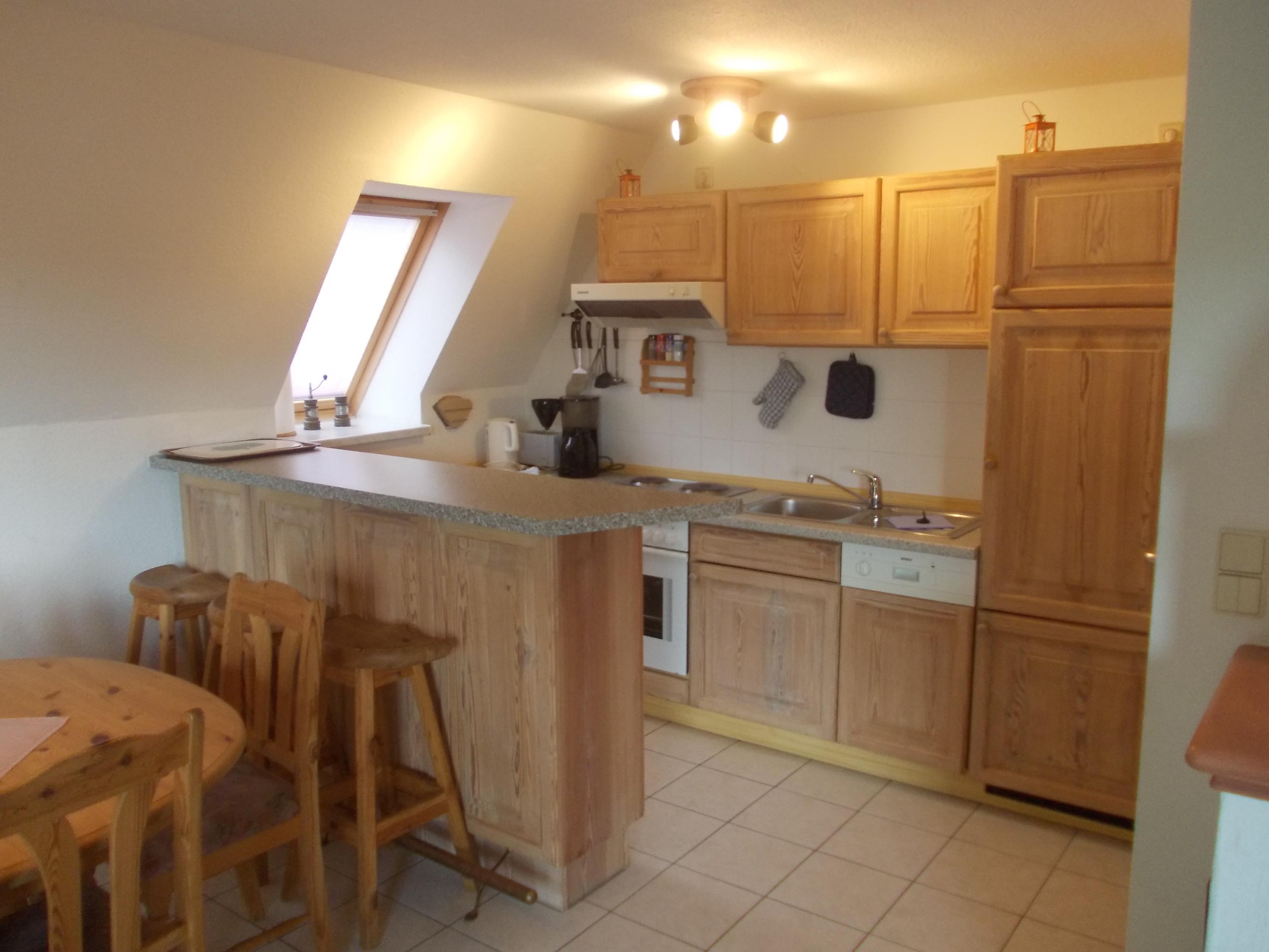 Im Erdgeschoß befindet sich der Wohnraum mit Küchenzeile, Du/WC. Die beiden separaten Schlafzimmer - 1 x Doppelbett, 1 x 2 Einzelbetten befinden sich im Obergeschoß.