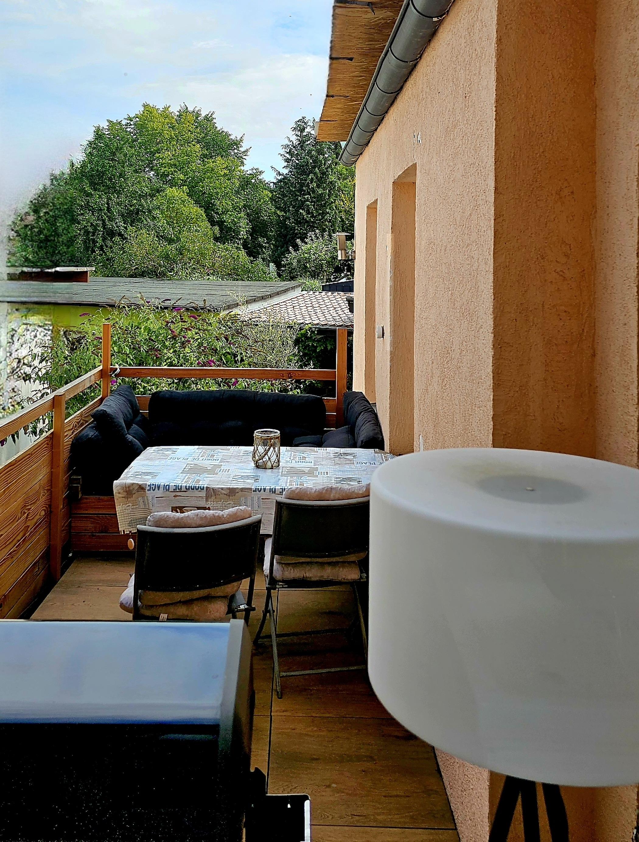 perfekter Frühstückssonne. Sollten Sie Schatten bevorzugen steht ein großflächiger Sonnenschirm bereit. In der Wohnung ist überall WLAN verfügbar. Die Räume bestechen durch ihre hellen Farben und ihre gradlinige Einrichtung. Die Küche verfügt über 2 Arbeitsflächen, einmal
